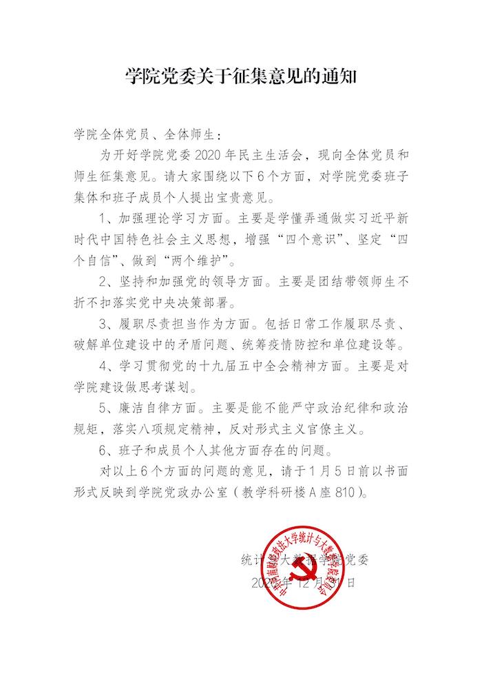 上一条:2020年度考核等次优秀人员公示 下一条:关于开展2020年统计与大数据学院学生思想政治状况调查的通知