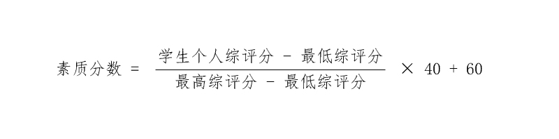 对综评分按以下公式进行数据标准化处理后,记为素质成绩(满分100分):