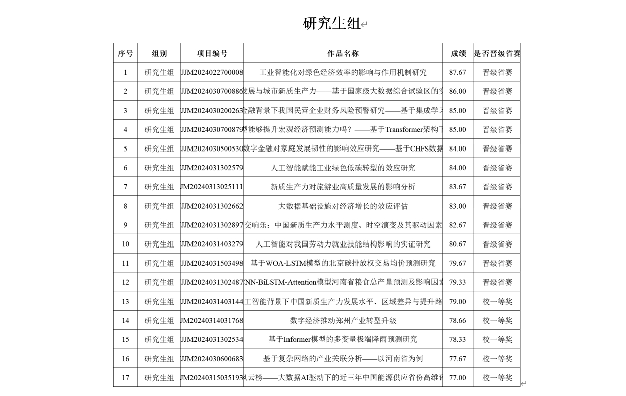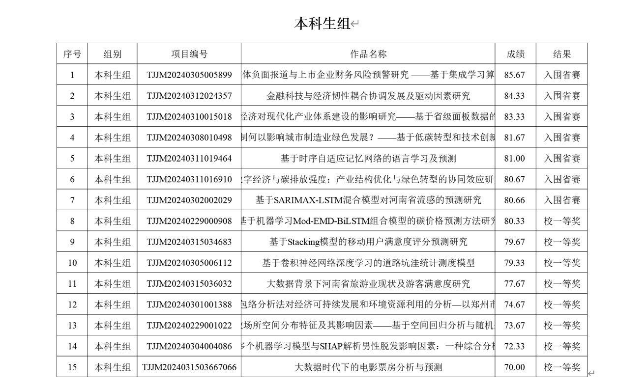 2024年(第十届)全国大学生统计建模大赛自2月开赛以来,共33支队伍提交论文参赛(1支弃赛)。经过匿名评审,共19支队伍入围省赛,其中本科生组7支,研究生组12支。