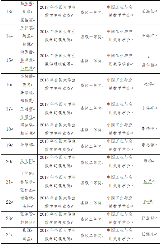 全国大学生数学建模竞赛河南赛区的分赛从2018年9月13日开始,为期4天。我院参加数学建模成绩揭晓,具体获奖情况如下:
