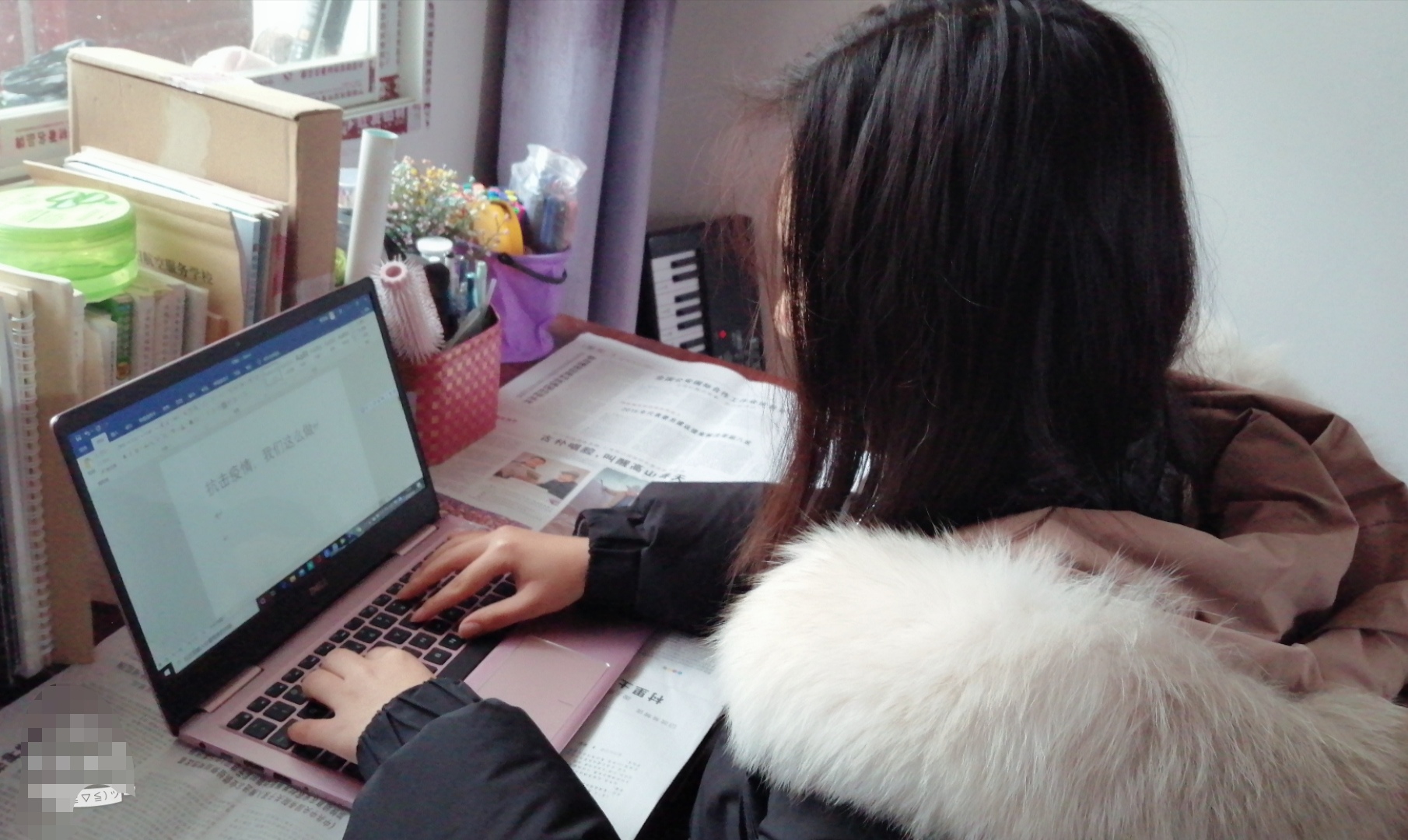 统计与大数据学院181106班的夏淑瑶,利用网络平台,为乘风破浪的抗疫团队写推文,以自媒体形式让更多宅在家里的人了解抗疫情况,推荐使用以学代考的抗疫app,以专业的医学知识和轻松的画面转换去让更多人知道疫情的严重性以及如何做好个人防疫。也许她在团队里也只是微小的一部分,但她仍以诚热的心去写每一篇文章,含着对团队甚至对国家负责任的炽心去描绘抗疫实事与团队进程。