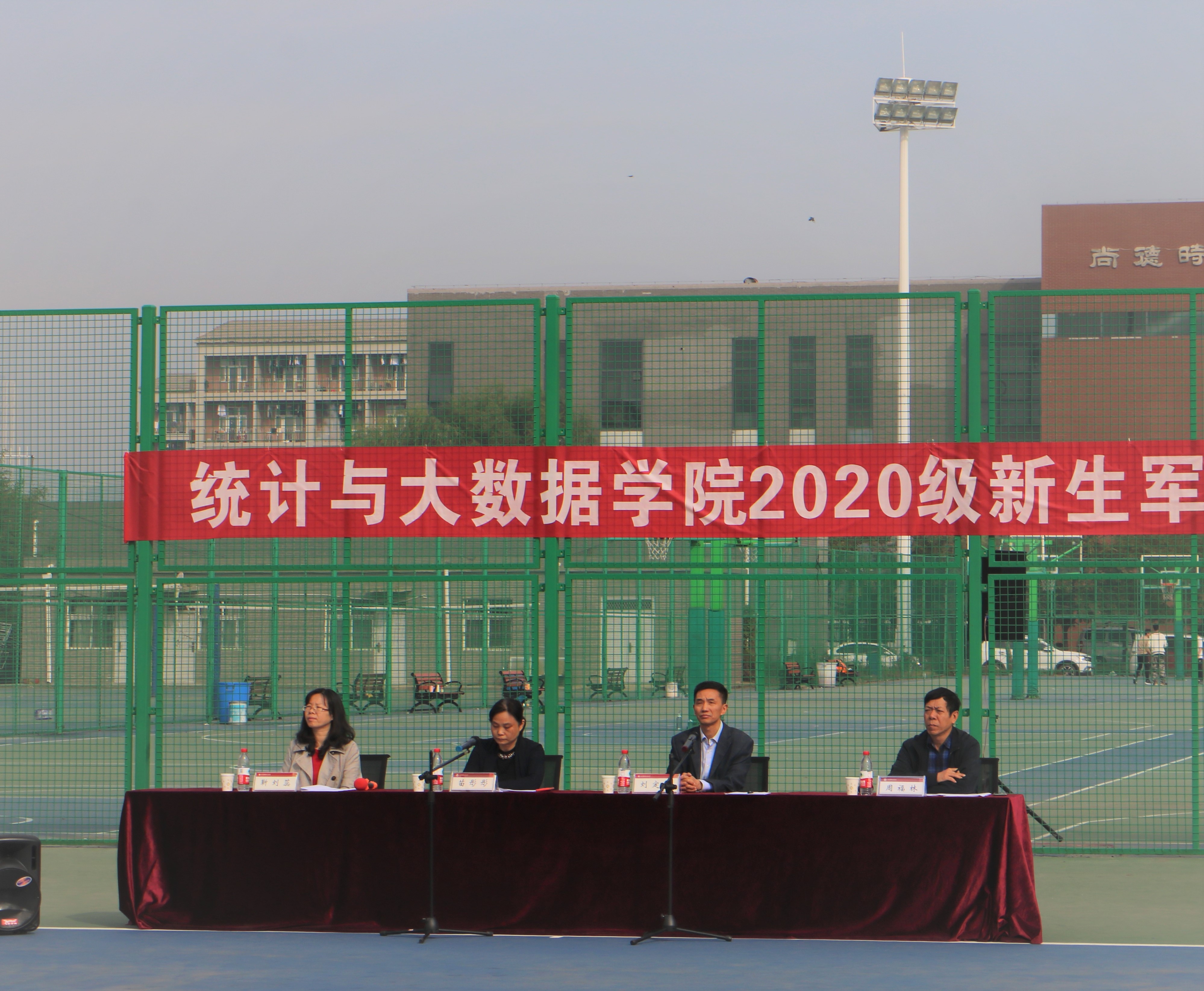 汇演由代表方队展示站军姿、踢正步、走方列等项目拉开了序幕。20级新生迈着整齐的步伐,喊着响亮的口号,气宇轩昂,英姿飒爽。由学生标兵展示了停止间转法,齐步走,军体操,佩戴放毒面具,骨折包扎等项目。为期一周的训练时间,不仅锻炼了他们的体魄,更增强了他们的意志。训练内容展示完毕后,我院主要学生干部为优秀学生标兵和模范寝室颁发了荣誉证书和锦旗。汇演第三项,由刘定平发表讲话,他充分肯定了军训的成果和汇报表演的成功,代表学院向承训教官表示感谢,讲述了统计系逐渐壮大为一个有着千余名学生的大学院的发展历程,展示我院优越的教学和教育成果。最后,刘定平强调,大学期间依旧要“求学”,认真学习是首要任务,对新生们给予了厚望。