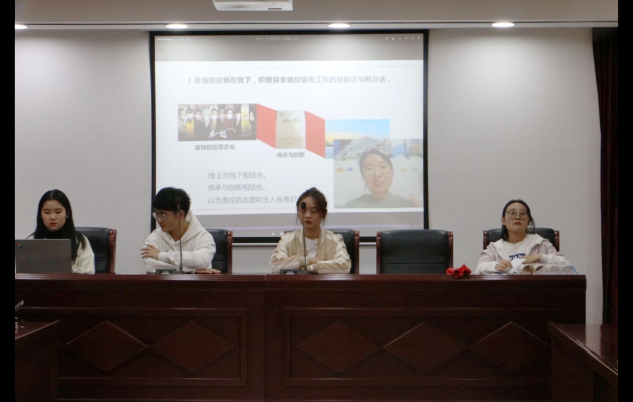 11月6日晚7点,我院在教学科研楼A座828教室召开2020学年宣传中心见面会暨新成员培训会。团委书记郭粹老师及宣传中心全体成员参加了此次会议。本次会议主要分为郭粹老师发言、新成员自我介绍、部门培训三个环节。