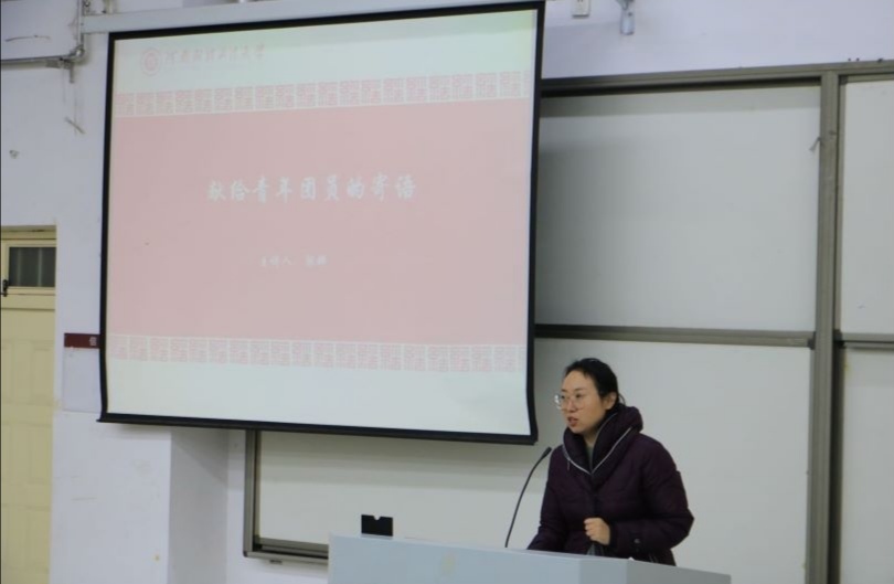 12月1日晚上七点,由校团委主办、统计与大数据学院承办的“开启新征程,肩负新使命”主题团课活动于教学科研楼209教室召开。本次主题团课分为主题演讲,团员宣誓,齐唱团歌,优秀团员青年代表发言四个环节。主题演讲由统计与大数据学院团委书记郭粹老师主讲,来自全校多个院系的19级、20级共青团员代表参加学习。