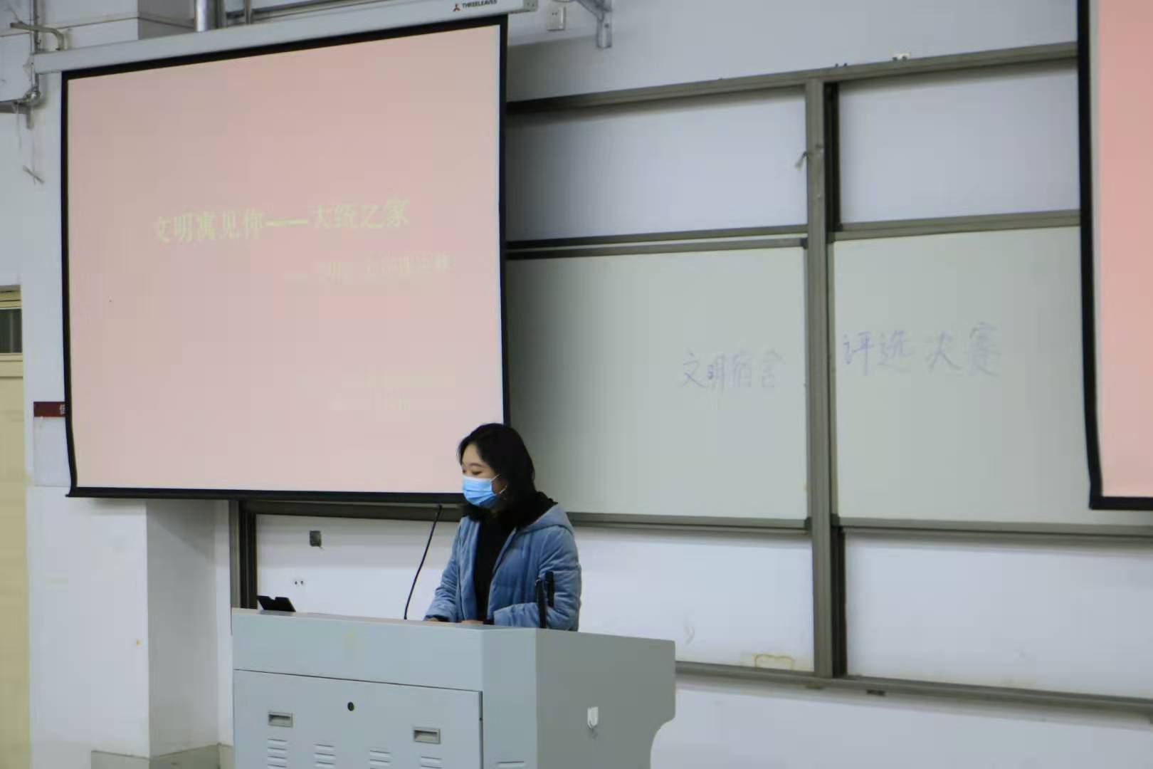 为提升学生文明素养,营造良好宿舍氛围与环境,12月21日晚6点30分,我院于教学科研楼209教室举报“文明寓见你——大统之家”文明宿舍评选决赛。本次活动,19级、20级四十余个宿舍积极报名,参与了此次评选。