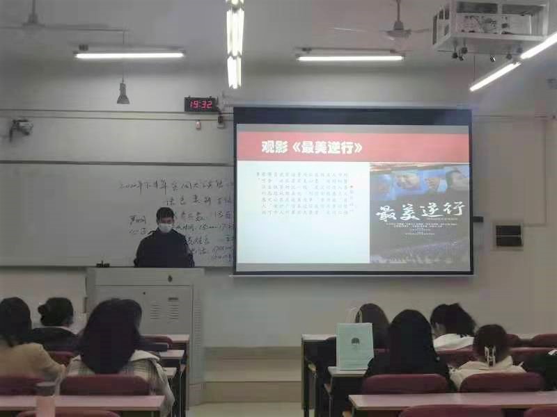为进一步宣传伟大抗疫精神、加强家国情怀,同时增进社员之间的友谊联络,12月12日晚七点半,青年自强社于第一教学楼208教室开展第二次社员见面会暨致敬最美逆行者观影活动。本次见面会由青年自强社会长窦自强主持,主要分为社员集体观看影片《最美逆行》和会长发言两部分。