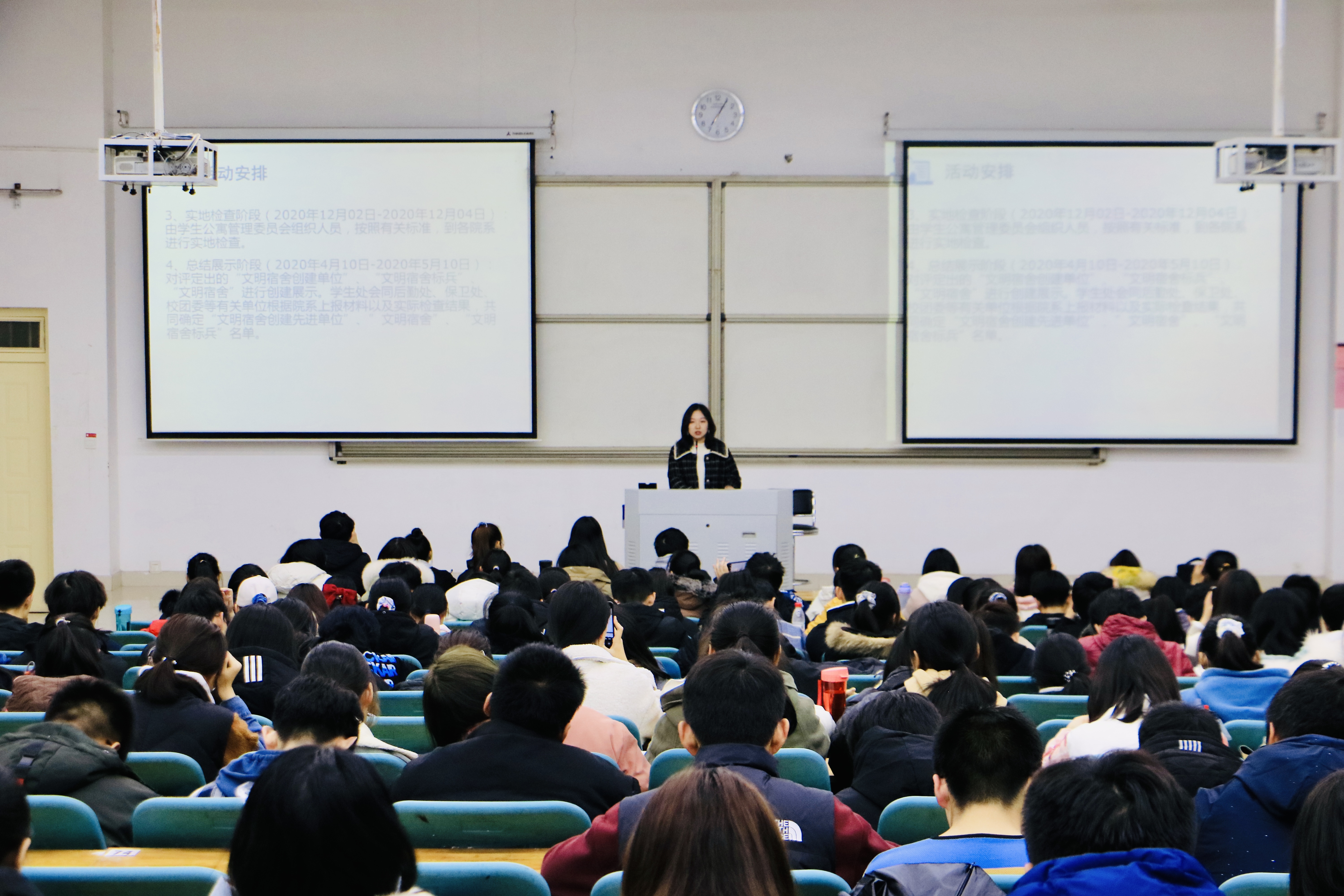 为响应学校关于开展2020-2021学年文明班级、文明宿舍、文明学生创建活动的号召,持续深化学生精神文明创建活动。12月11日晚,我院于教科楼210室组织开展本学年文明创建活动动员大会,宿舍长及19、20级共计300余人到场参加。