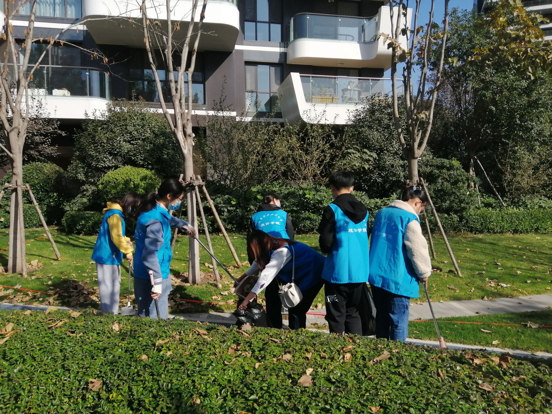 活动过程中,一组志愿者在小区内部清扫街道垃圾;另一组在活动区开展宣传工作,引导参加活动的居民和小朋友进行投壶和垃圾分类小游戏,呼吁更多的人加入我们。活动结束后,我院志愿者同社区工作人员合影留念。社区工作人员对我们的志愿者服务给予了肯定,并期待以后的进一步合作。