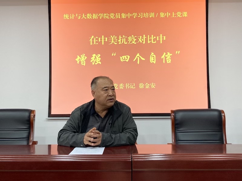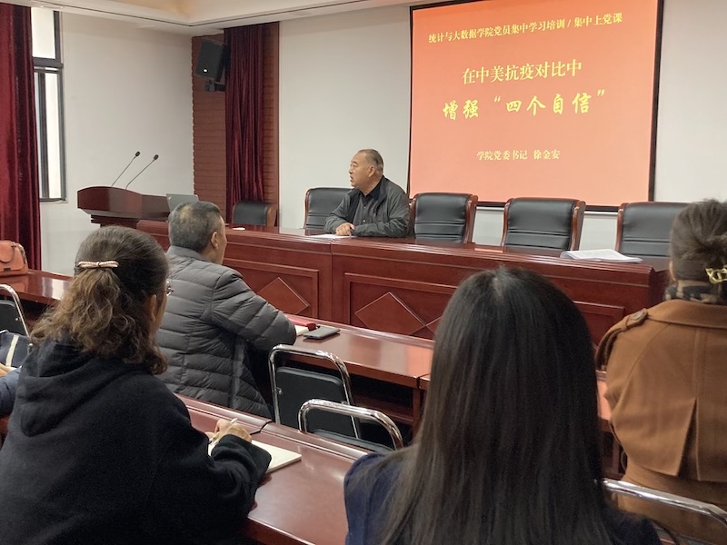 根据学院党员年度培训计划安排,11月2日下午,学院党委书记徐金安以《在中美抗疫对比中增强“四个自信”》为题,为全院师生党员上党课。