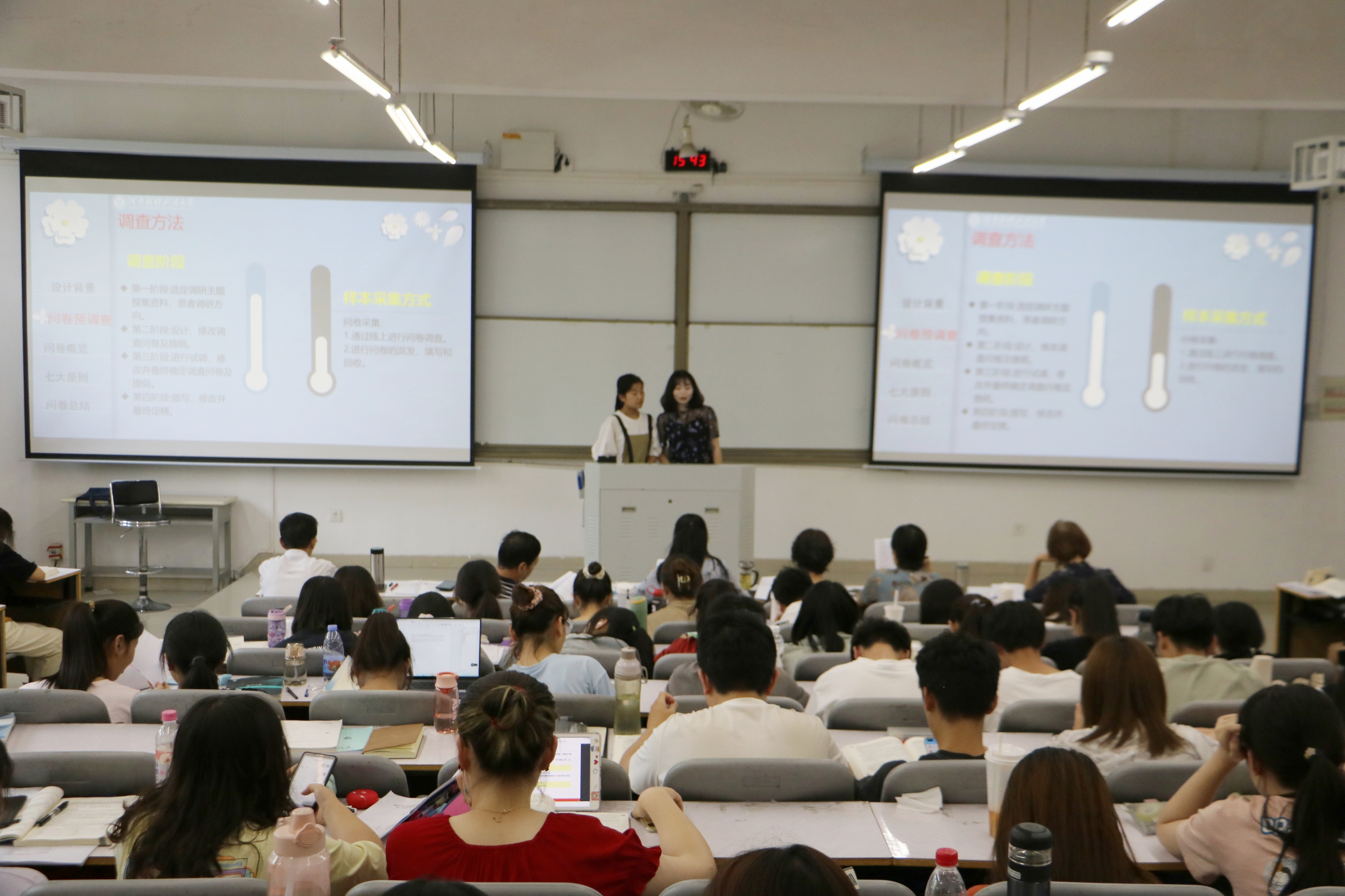 各参赛队伍通过展示PPT、具体问卷调查文件等,主要从问卷设计主题、设计背景、设计思路、设计总结等方面向评委和同学们介绍本组作品。参赛队伍们优秀的演讲、精巧的构思、沉着认真的态度赢得了观众一阵阵热烈的掌声。评委老师们结合各队伍的表现情况,严格遵守选题(占比20%)、展示综合表现(占比30%)、问卷表达(占比50%)的评分准则进行现场评分。最终产生一等奖三支代表队、二等奖五支代表队、三等奖九支代表队,并由岳树岭老师公布获奖名单,刘定平院长总结陈词。
