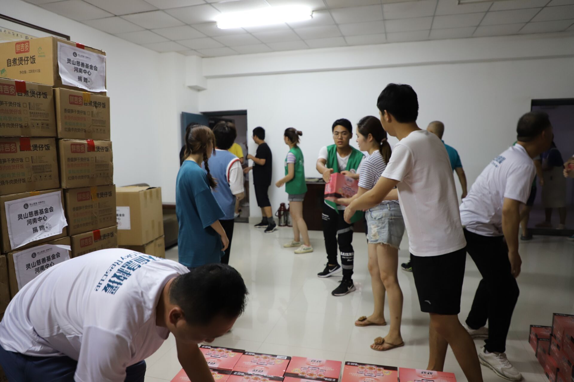 7月24日14时左右,威廉williamhill郑东校区收到了来自灵山慈善基金会驰援河南的首批物资,162名师生志愿者参与物资卸货。181104班丁升宇、刘媛同学帮助王勇老师组织救援物资卸车工作,清点数目。