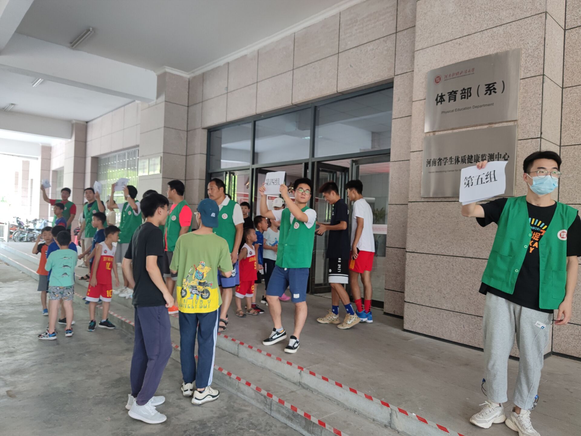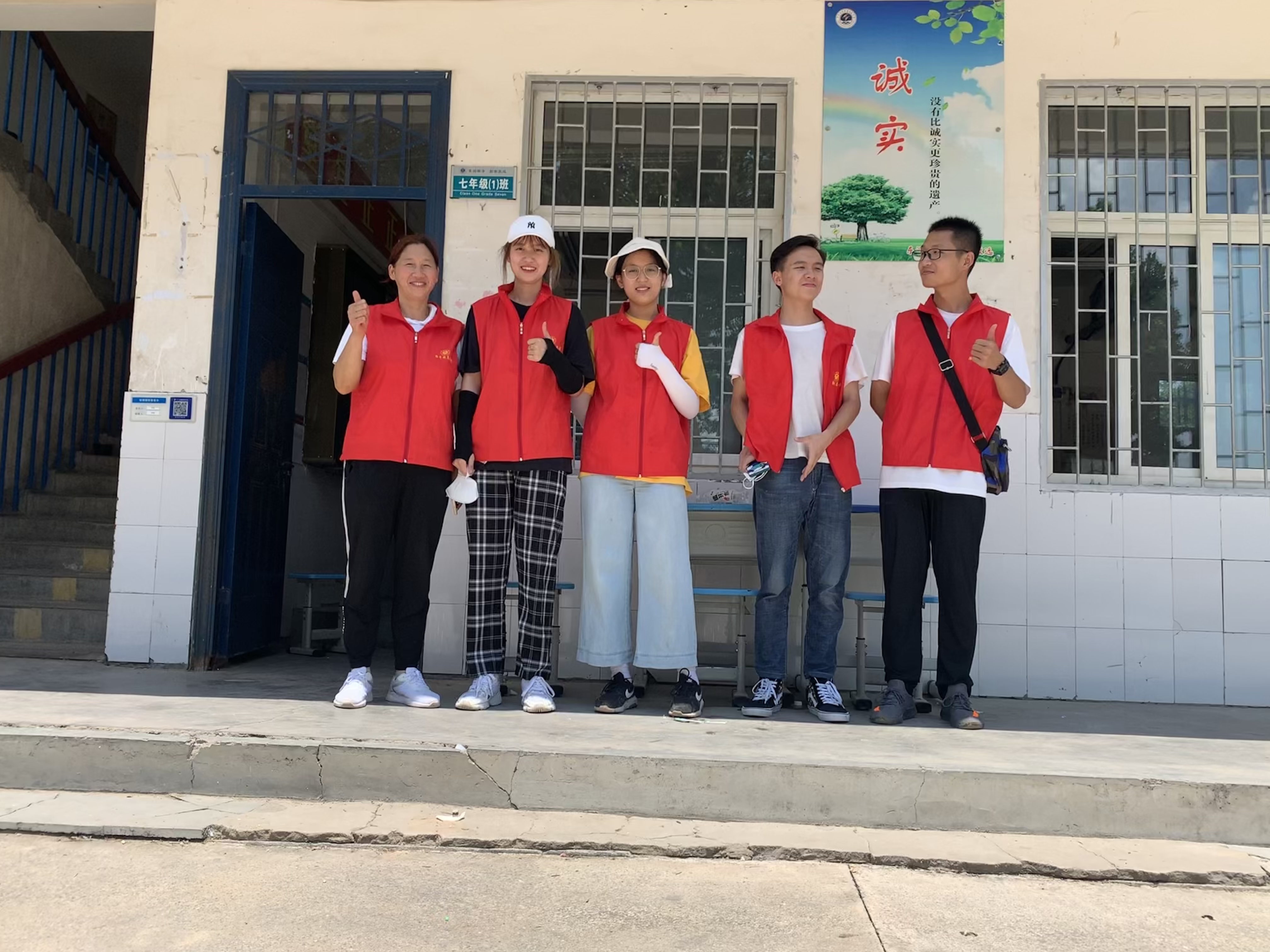 师生们站成一条长龙,温暖传递