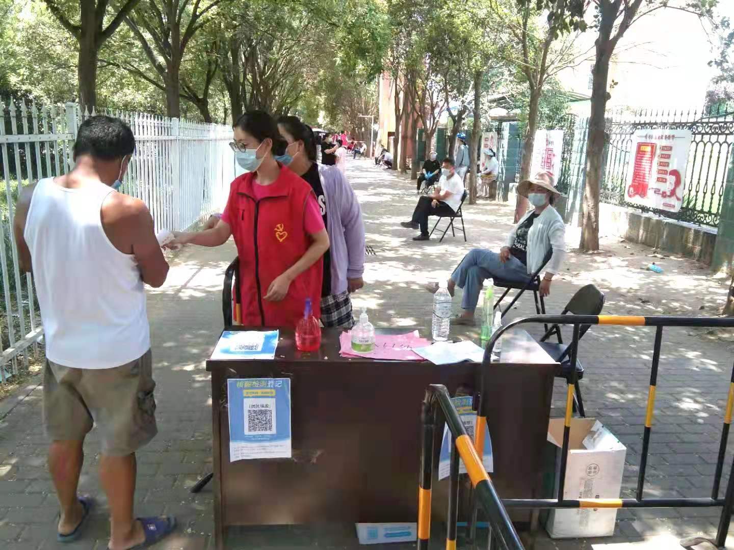 在第一次核酸检测中,她负责维持秩序、测量体温等工作,引导大家间隔一米站开,以免造成感染;此外,由于第一次核酸检测需要进行线上登记,有一些老年人或孩子如果不能提前完成登记,会导致核酸检测进程减慢,她提前跟这些人群说明登记方法,帮助他们进行登记,提前截屏,以加快后面的检测进程。工作过程中,她也发现,大部分的居民对工作十分配合,大部分年轻人都会陪同老人一起来进行核酸检测,这都给自己和他人都带来了便利。在这种特殊的时刻,只有大家都能讲秩序,互相理解,才能更好的开展一些列疫情防控工作。