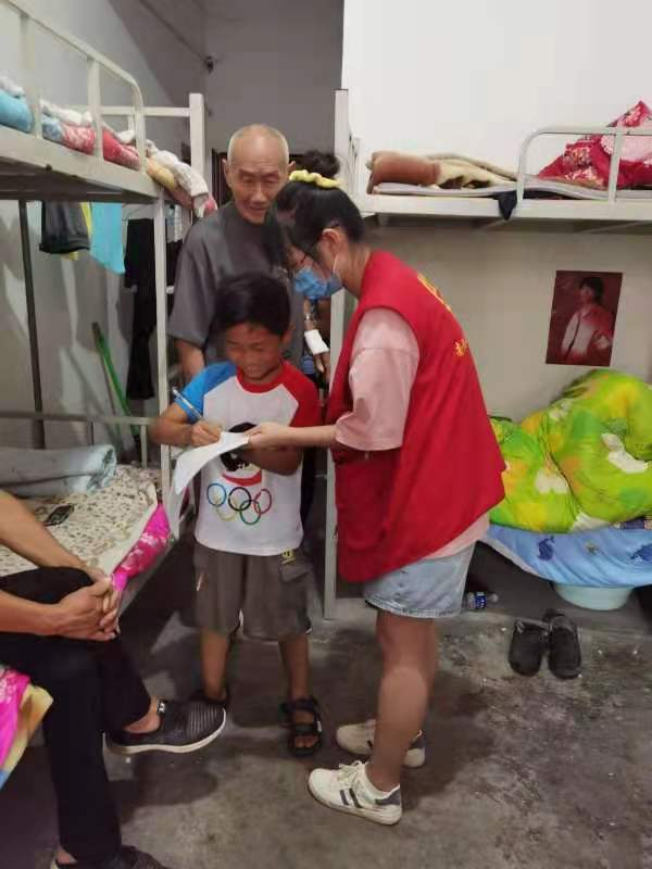 “请大家排好队,每个宿舍长按人员需求来领取物资。”这是她在有序组织灾民领取物资;“请问咱房间的配套设施有什么问题吗?”这是她在对灾民居住宿舍的照明、制冷、盥洗设施进行逐一排查;为方便宿舍的统一管理,她还为每个寝室张贴了《安置点管理制度》,并进行简单宣传,争取群众的需求能够落实到位;为保证安置点群众人身安全,制定了请销假制度,她协助机关工作人员认真做好外出登记,做到有序进出;目前正值暑假期间,安置点的学生处于“散养”状态,在得知计划开展临时学生托管服务,需要统计各个阶段在校生情况时,她便投入到学生信息统计工作中去。那天她奔波在寝室一楼到六楼之间,不知疲倦。她说“相比那些冲锋在一线的军人战士,我的身影是微不足道的,只不过是做了自己力所能及的事。”