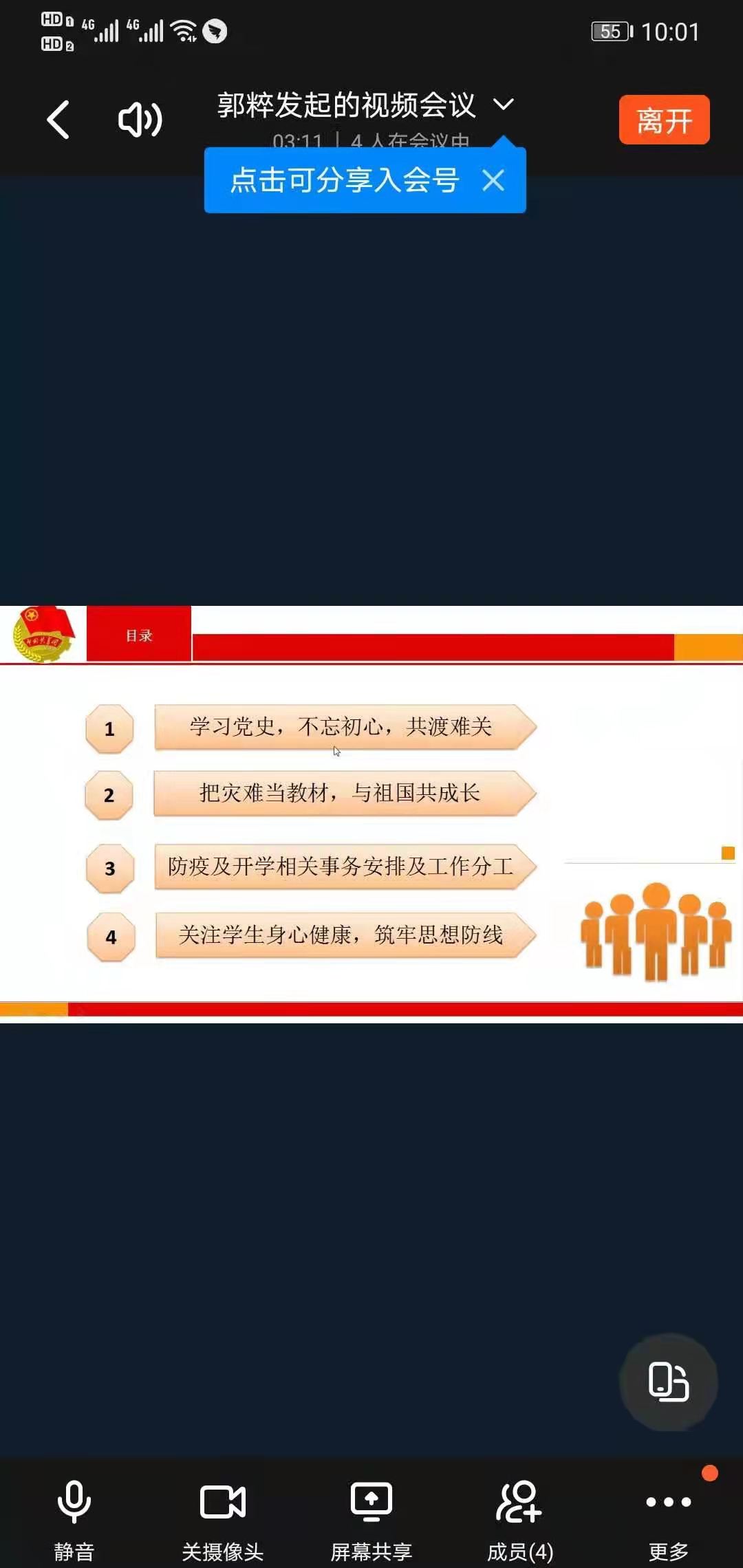 会议内容分为4项:第一项,徐金安传达学校相关会议精神,引导全体教职工深入学习习近平总书记系列讲话精神,学习党史,不忘初心,提高政治站位,履行责任义务,共渡难关;第二项,苗彤彤讲话,她表示从抗洪到抗疫,我们看到了统计学子们自觉扛起社会责任和使命担当,与祖国共成长的身影。学院也将收集到的志愿者先进事迹整理成了“身披红甲,心有锦缎”等特辑,在学院官方微信公众号推送。她强调要不断努力,结合实际构建爱国主义协同教育机制,营造群防群治氛围。第三项,团委书记宣读经学院党政领导班子审核批准的新学期辅导员工作分工,明确了每个辅导员的工作内容和职责范围,要求各位专职辅导员守好自己的责任区,责任交汇处上前一步,荣誉交汇处后退一步,行为世范,立德树人。最后,苗彤彤再次强调要关注学生身心健康,重视学生的意识形态和心理健康教育,不管是线下还是线上,都要筑牢思想防线。