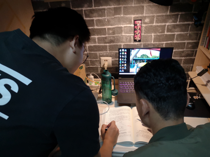 1.2021年5月20日,帮扶者常照彦帮助先尔库提江·艾尼娃在宿舍补了两个小时的“宏观经济学”。