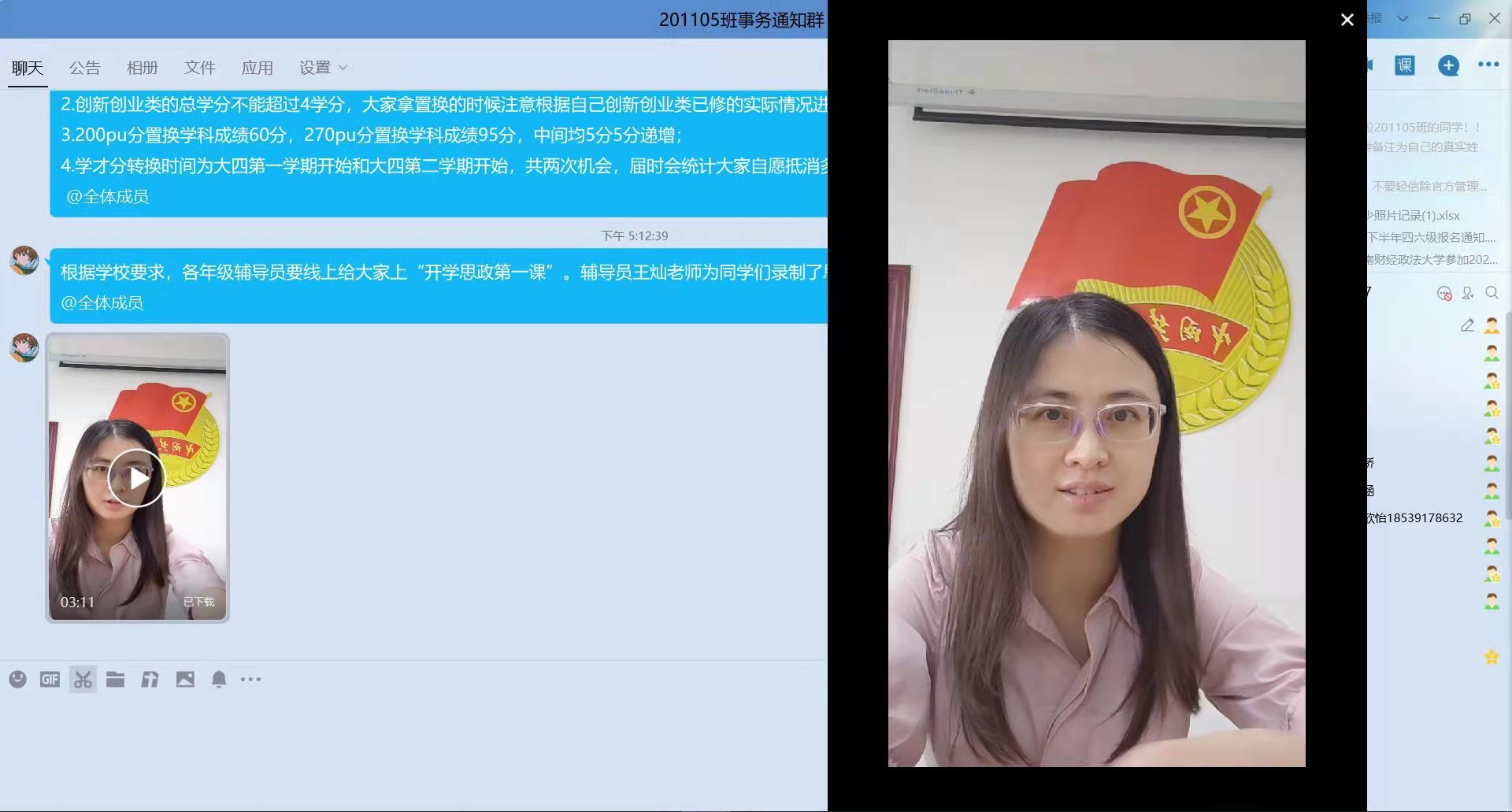 其中,9月中旬新生辅导员王昕和新生班代班助针对2021级新生召开开学第一课;9月20日辅导员王灿、兼职辅导员张碧雪为2020级学生主讲开学第一课;9月22日辅导员郭粹为2019级学生开展开学第一课教育;9月26日辅导员肖耀伟为2018级毕业生讲授开学第一课。均通过钉钉平台线上开展,实现了全员参与。