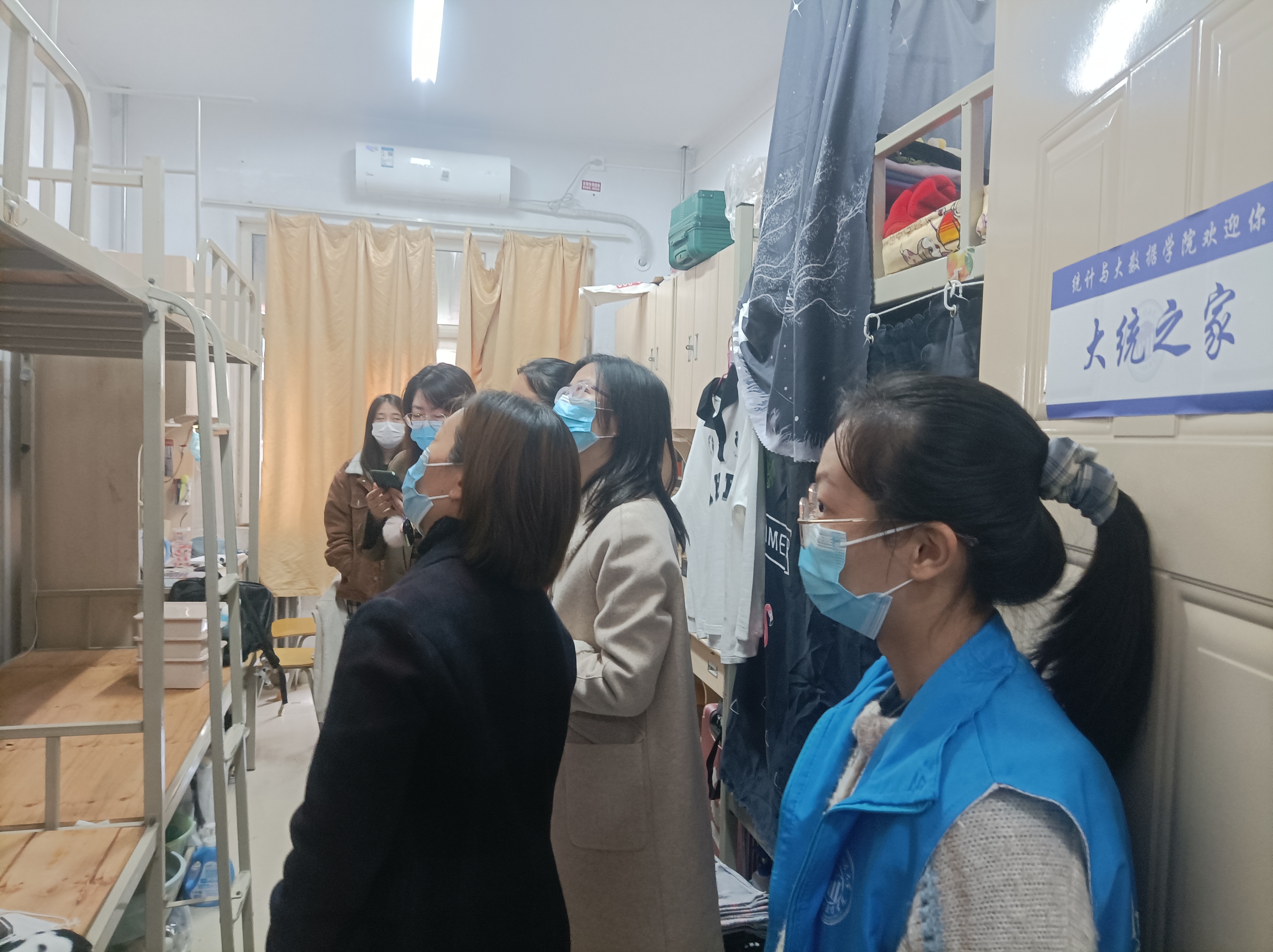 10月17日下午,统计与大数据学院党委副书记及全体辅导员老师走访了学生宿舍,对暴雨后及常态化疫情防控期间学生学习、生活上进行了解。
