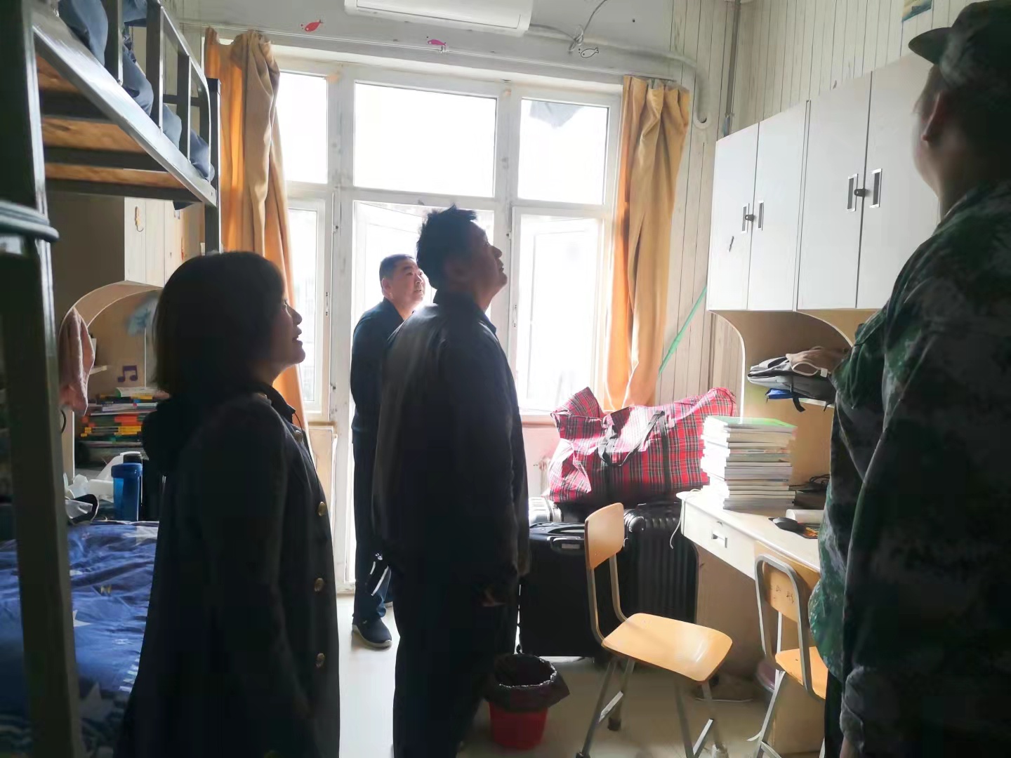 10月28日下午,校武装部部长陈灵义,副部长彭伟在统计与大数据学院党委副书记等一行人陪同下走访位于雅苑的男生新生宿舍,指导学生做好宿舍内务卫生。