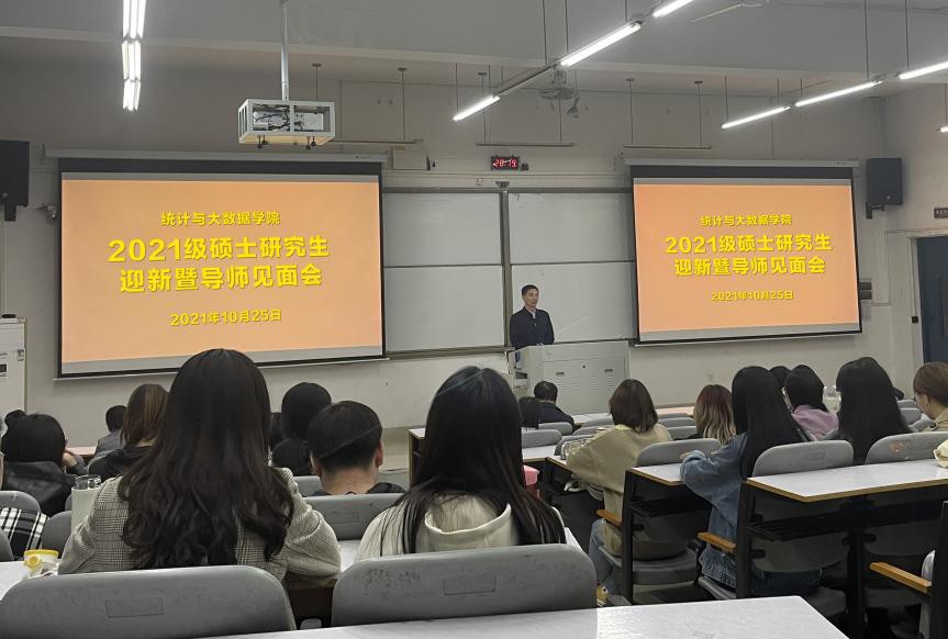 2021年10月25日晚7时,我院2021级硕士研究生迎新暨导师见面会在教1-215隆重举行,院党政领导班子全体成员、研究生导师、相关行政人员及2021级54名研究生出席了大会。
