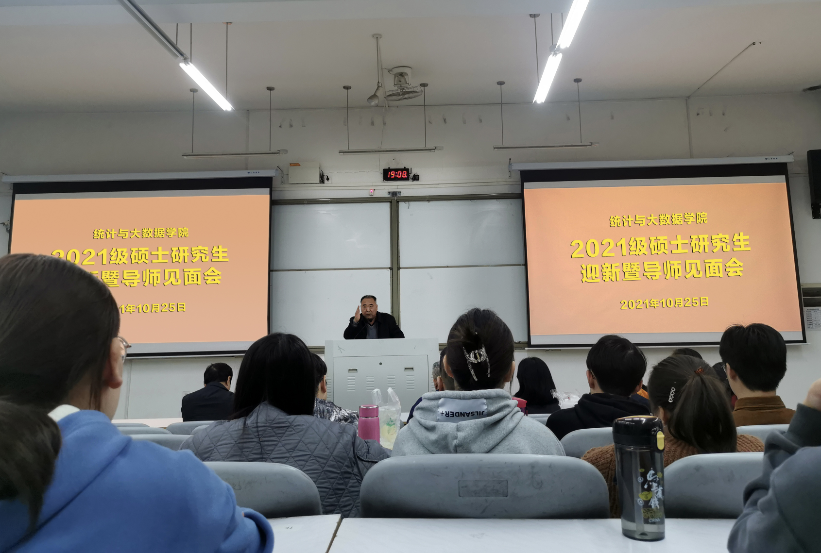 2021年10月25日晚7时,我院2021级硕士研究生迎新暨导师见面会在教1-215隆重举行,院党政领导班子全体成员、研究生导师、相关行政人员及2021级54名研究生出席了大会。