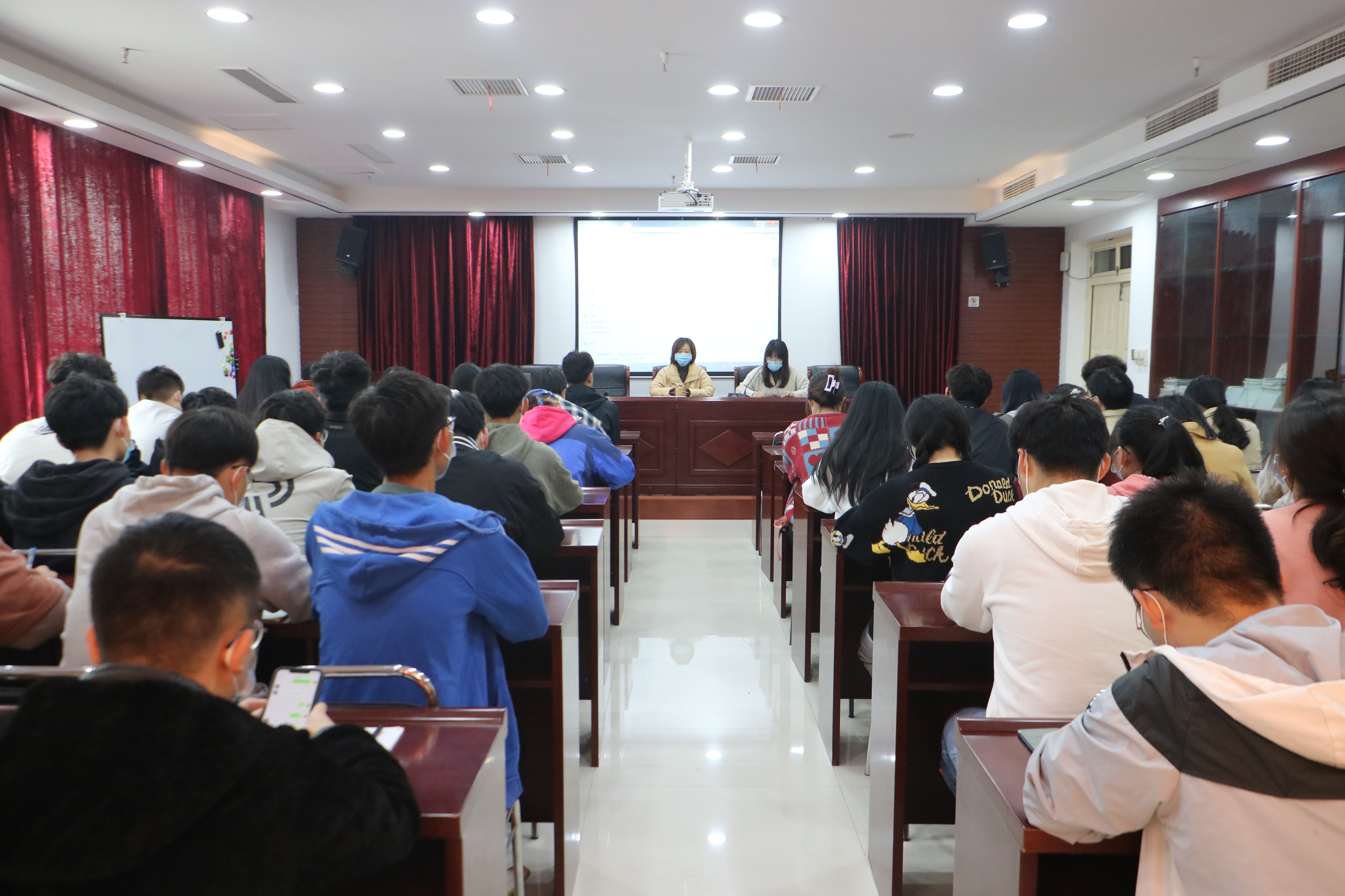 11月7日,我院于教学科研楼828室紧急召开疫情防控大会,院党委副书记李洪玲和辅导员王昕主持本次会议,各年级班长和团支书参与此次会议。