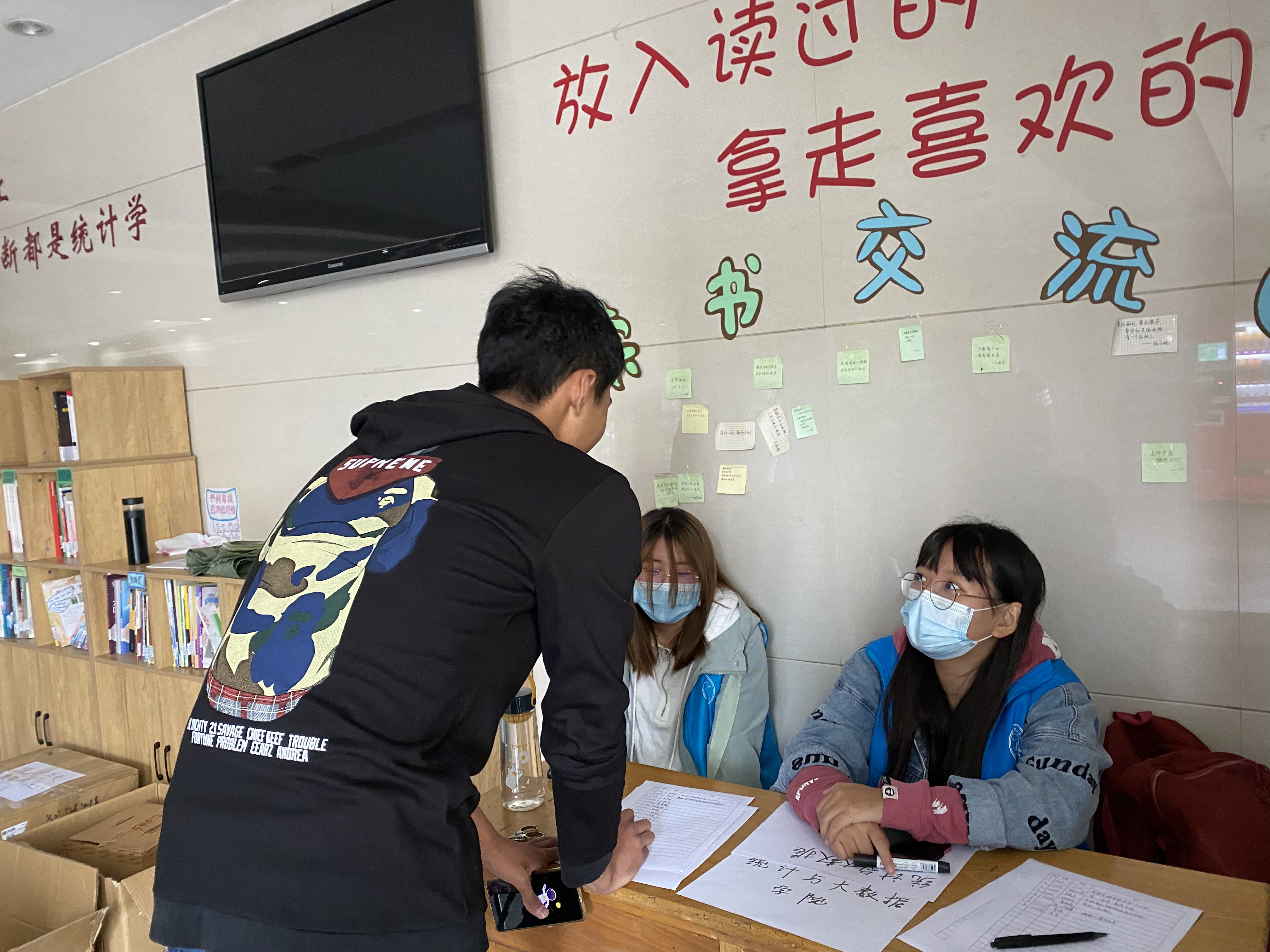 为了弘扬勤俭节约的中华美德,展现当代大学生的无私奉献精神,以及对公益的热爱。11月7日上午,统计与大数据学院青年志愿者协会携手“衣暖人心”公益组织在鸟巢书屋开展军训服爱心捐赠活动。