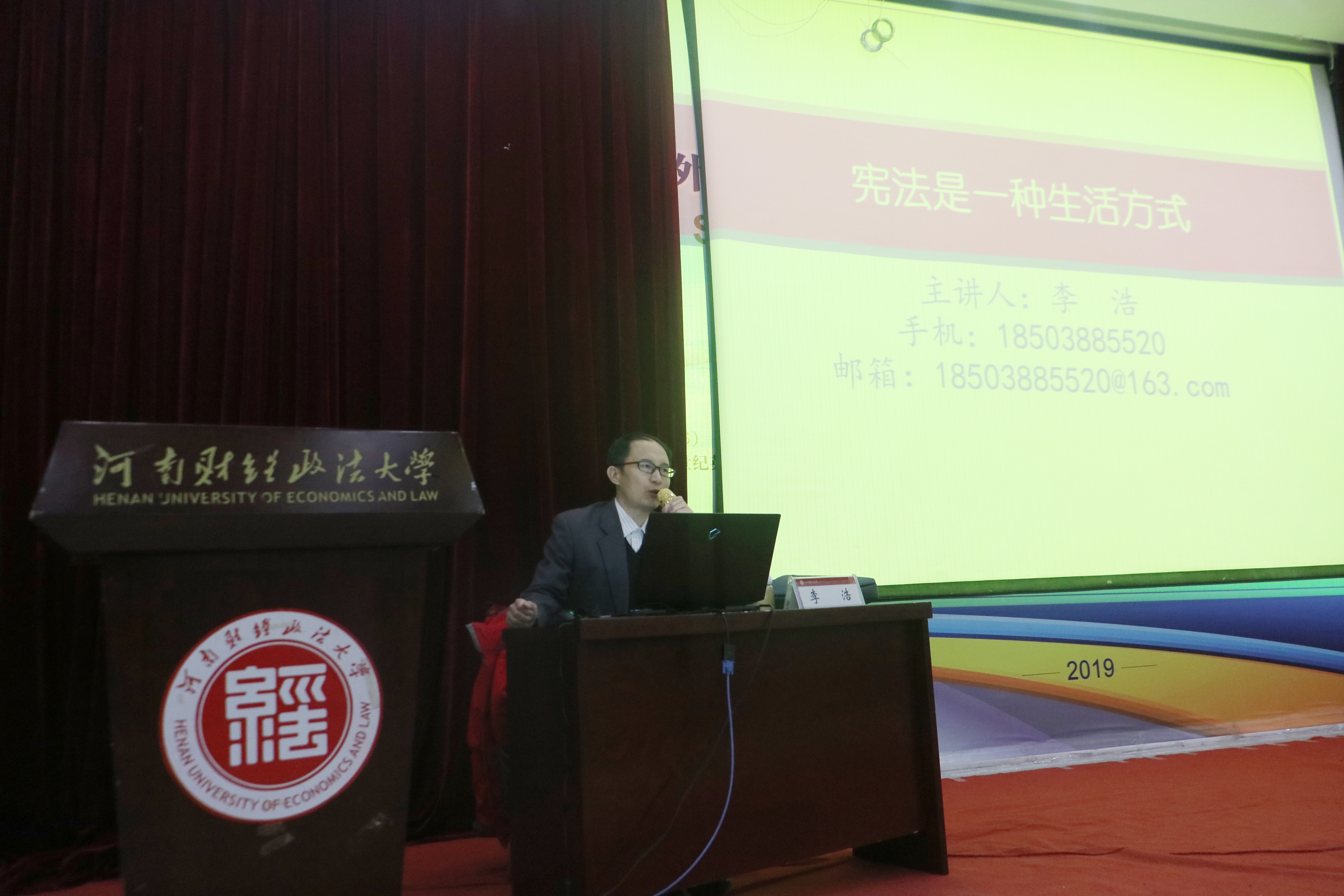 演讲开始,李浩用三件经典事件导入本次主题——宪法。本次讲座主要分为宪法日的由来、中国的宪法、宪法的使命、现行宪法的实施和凝聚意识再出发五个部分,详细全面地向同学们讲解了宪法的形成、用途、地位和意义,强调了宪法对国家权力的授予和制约。李浩语言风趣幽默,用一个又一个的宪法故事,极大地激发了同学们对宪法的兴趣。