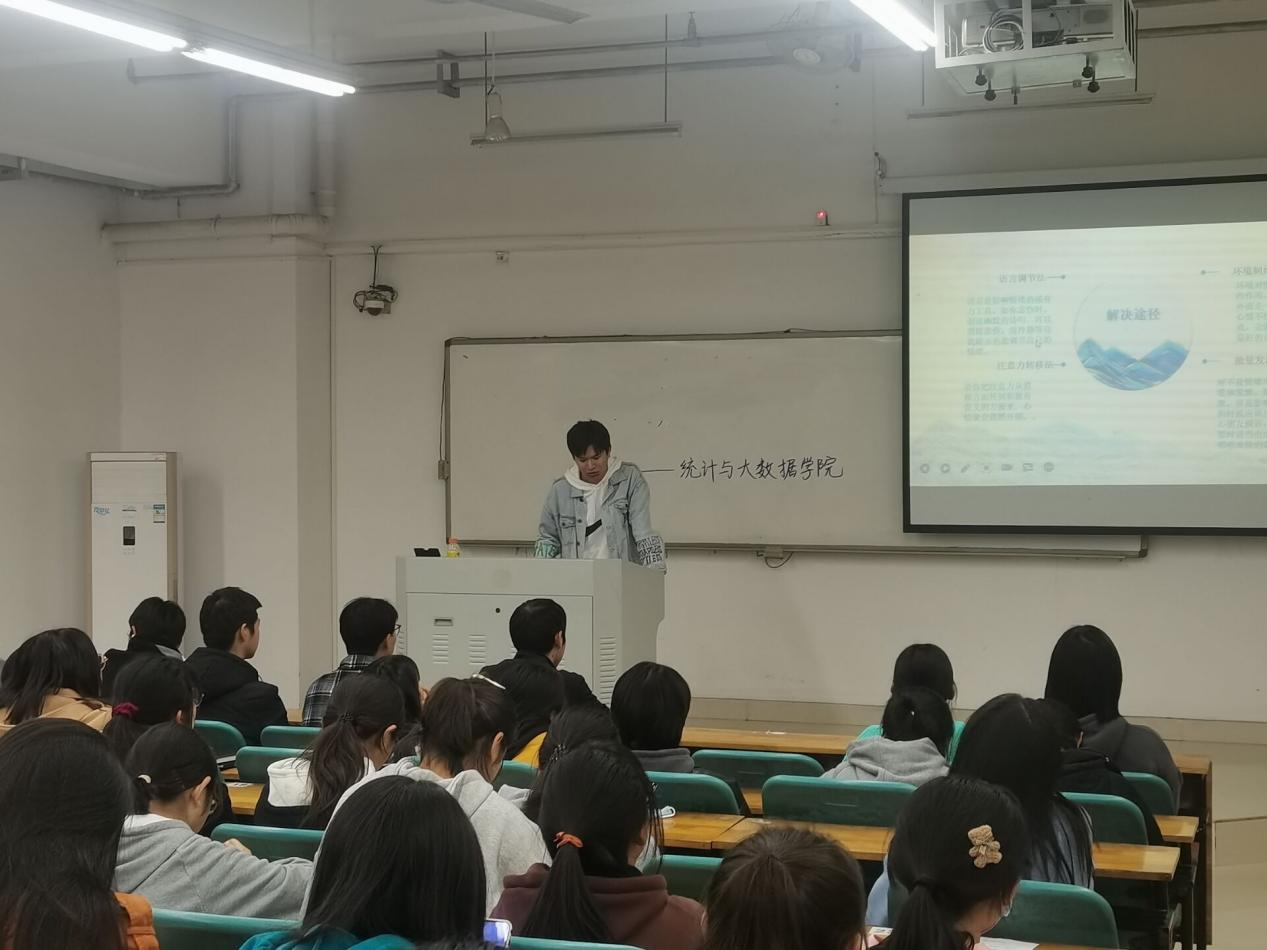 近年来,大学生的心理健康教育越来越受到社会各界的关注。为进一步提高大学生的心理素质,促进大学生的身心健康和谐,宣传普及心理健康知识,深入开展心理健康教育,统计与大数据学院于2021年10月20日在教科楼116教室集中展开了新生心理健康教育会。