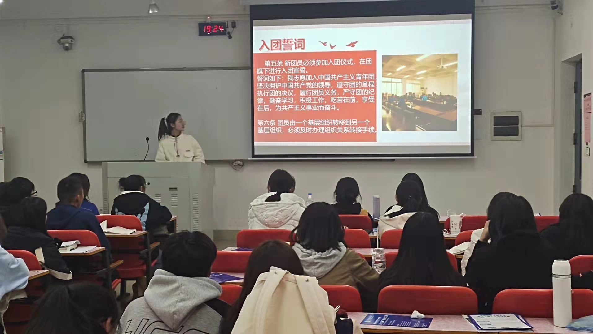为进一步加强对团员的培养、教育和考察,深入学习团的理论知识和团的职责,增加对共青团的荣誉感,积极传递青春正能量,我院团委书记郭粹于11月27日下午六点,为2021级、2020级团员召开了一次内容丰富的团课培训。