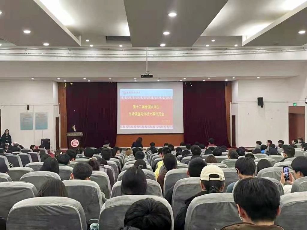 为了提高同学们参加比赛的积极性,营造良好的比赛氛围,增强同学们的综合素养和能力,12月14日晚上七点,我院在第一教学楼220教室举办了第十二届全国大学生市场调查与分析大赛经验分享与动员大会。院长刘定平,党委副书记李洪玲,副院长商勇、靳刘蕊,实验室主任王洪霞,经济统计教研室主任杨文溥,团委副书记王灿,教学秘书张栗珩出席本次会议,全院300余名同学参会。