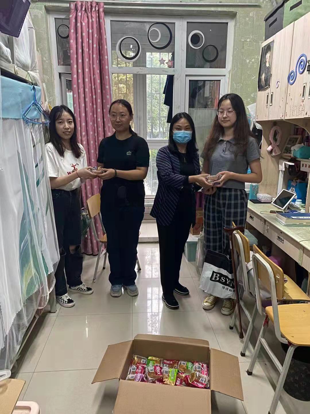 9月17日,我院党委副书记苗彤彤、团委书记郭粹代表学院走访慰问留宿学生,向170余名留宿学生赠送月饼,送上节日的问候和祝福,宿舍里到处洋溢着浓郁的亲情和温馨的氛围。