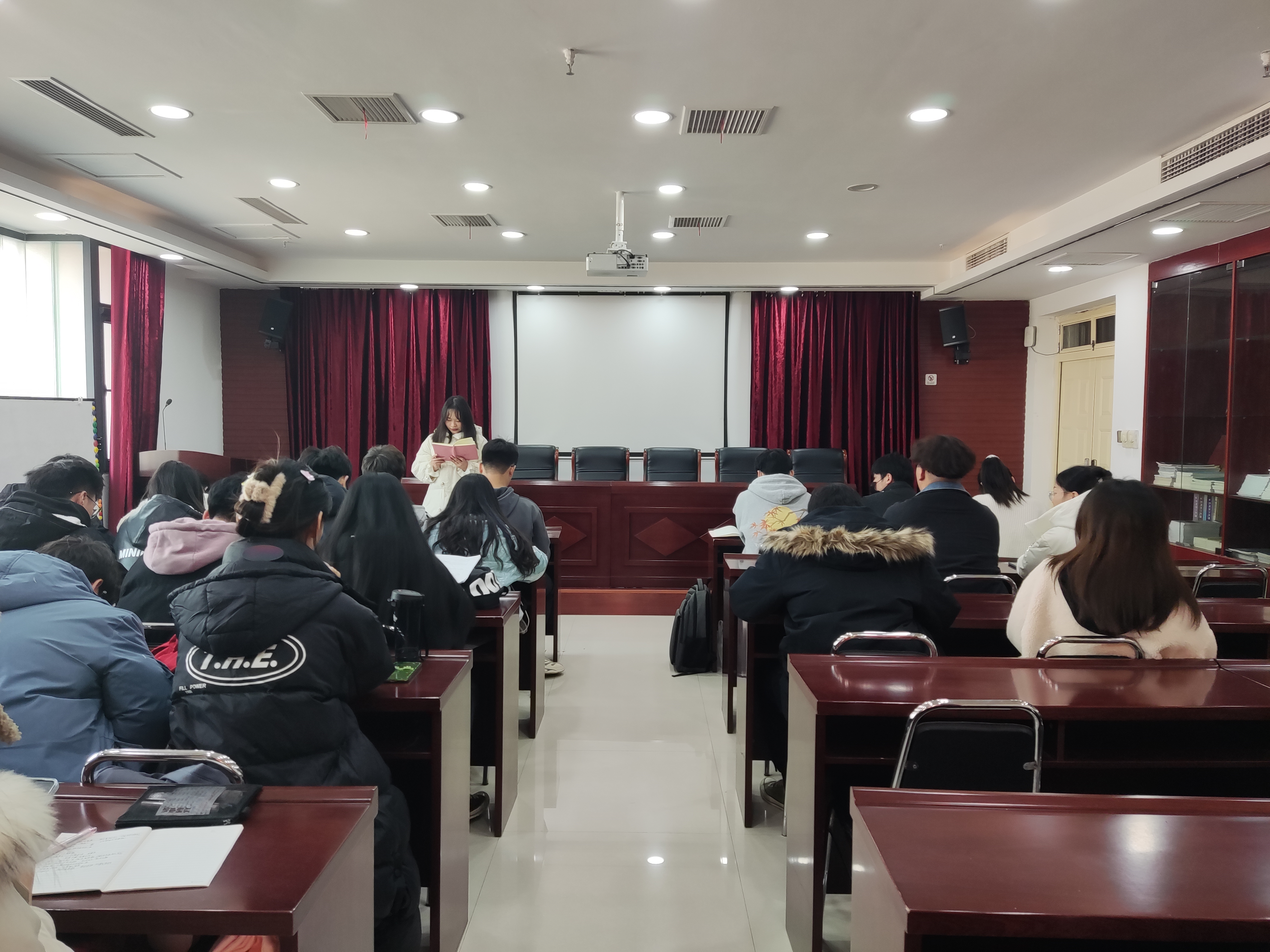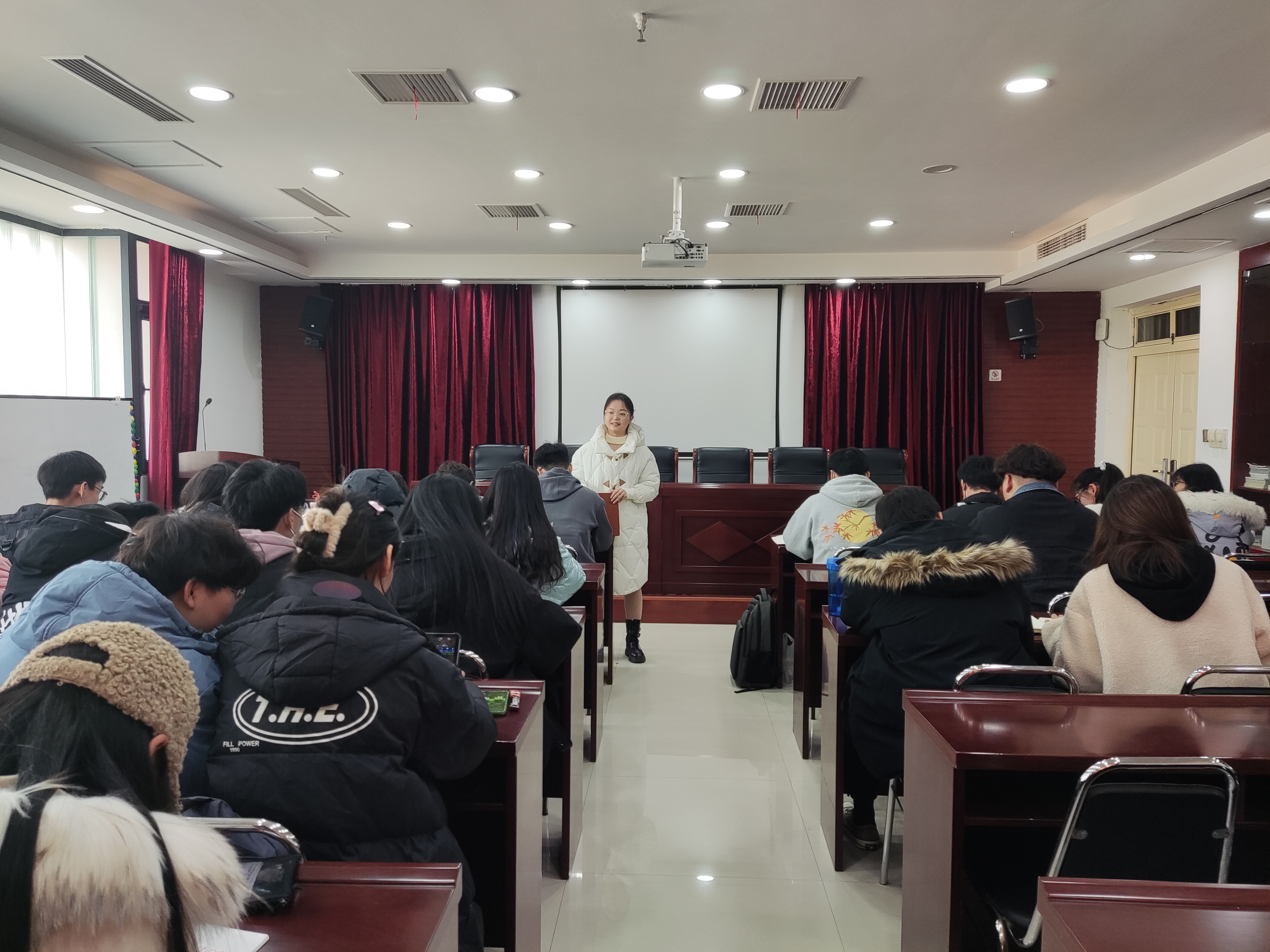 为深入推进全面从严治团深入基层,全面检验各团支部2021年基层团务工作开展情况,12月22日中午,我院于教学科研楼828教室召开了团支部书记述职大会,对各团支部年度工作成效进行评议,我院主要学生干部出席此次会议。