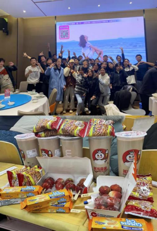 在这个世界上,没有一个人是孤岛;失去了陪伴,也失去了生存的意义。本支部自成立以来,便一直是一个团结一心,温暖友爱的大家庭。元旦前夜,本支部进行了一次小小的团建活动,分发了奶茶、糖葫芦、饼干等零食,大家一同游戏,一同聊天,一块跨年。小小的教室,充满了欢声笑语。在支部进行团建过后,男孩子会在班群里关心女生是否都安全到达宿舍,也会在跨年夜在班群中为大家发送祝福语和红包。不管何时何地,211103团支部所有成员的心是在一块的,劲是往一块拧的。相信未来的日子里,我们会更加的团结友爱,未来可期!