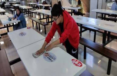 本学期的志愿活动分两批有条不紊地依次进行,分别在校园各处捡拾垃圾,帮助扫地的叔叔阿姨们扫地拖地等,分担工作人员们的清理任务。另一批志愿者们在教课楼和寝室楼下整理摆放同学们的车辆,把倒地的车子扶起,将车头并齐,使车子们看起来整齐划一。第三批由班长带领的几位志愿者们在餐厅帮助叔叔阿姨打扫地面卫生、清理桌子、帮助倒盘子等等。制作了感谢贺卡送给叔叔阿姨们,与工作人员们进行了一番交谈,其实正是有这些工作人员们不辞辛苦一直流动的清理卫生,才有我们如此整洁干净的学习、生活环境。
