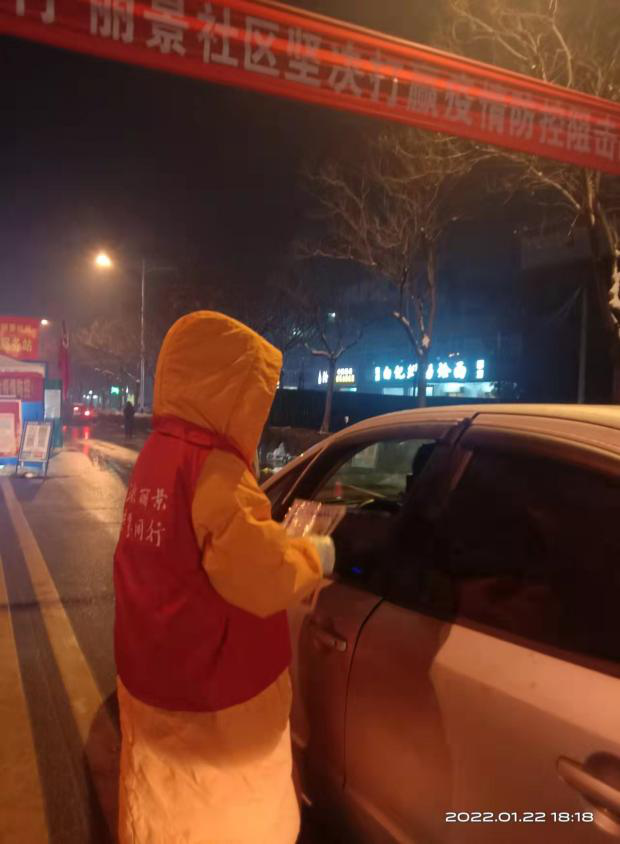 得知社区招募大学生志愿者消息后,李宁宁主动向社区请战,自愿加入志愿者服务队中。2022年1月15号早上8点30分到南花园社区疫情防控指挥部报道,随后产业集聚区南花园社区成立了疫情防控志愿者服务队。她和“战友”一起登记信息、测量体温、张贴防疫宣传公告和居家健康告知书,及配合社区医务人员去给居家健康检测的人员做核酸检测,做好社区疫情防控期间的宣传引导、摸底排查、体温检测等工作。