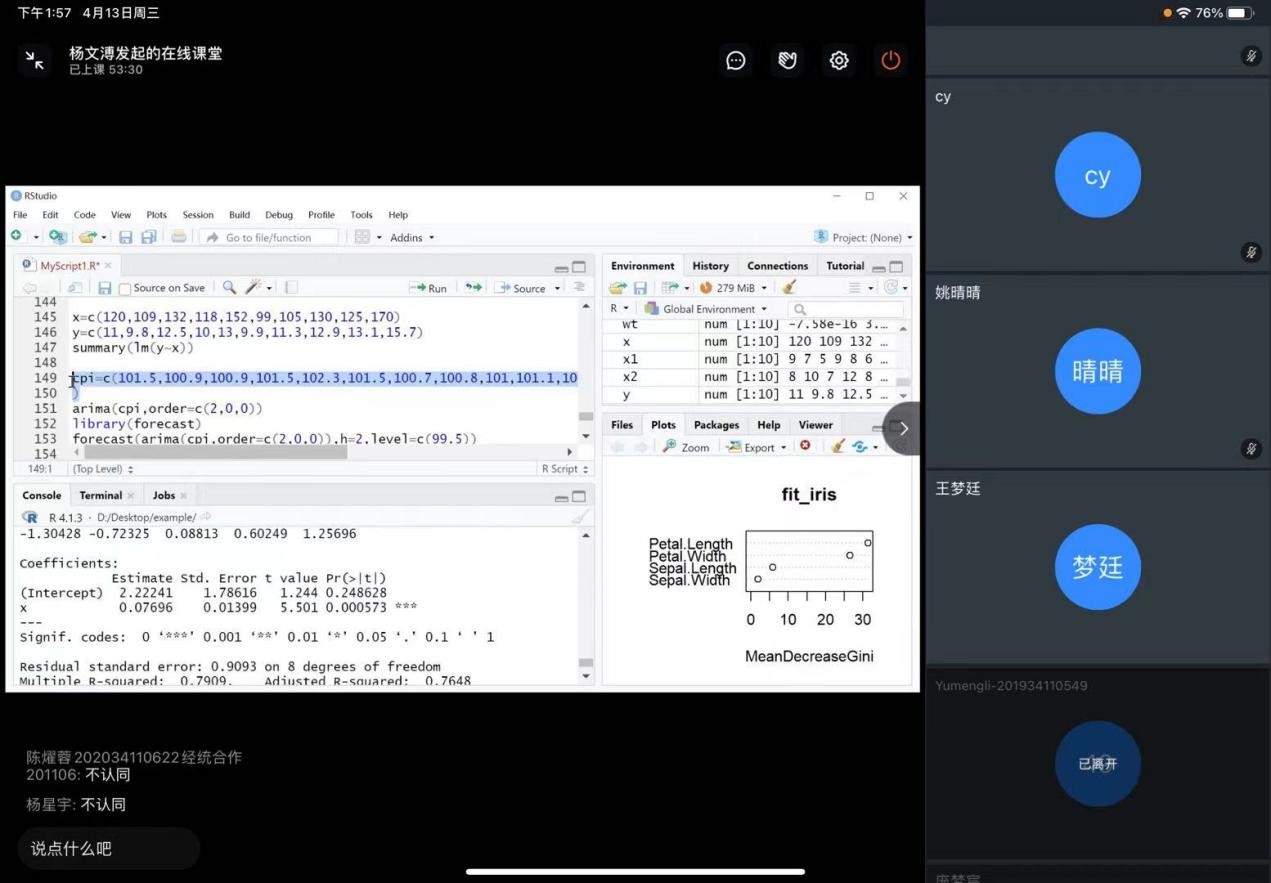4月13日中午,大数据应用分析研究会线上举办了统计建模培训活动,社长余梦鲤邀请到在统计建模有着丰富指导经验的杨文溥老师主讲本次培训。