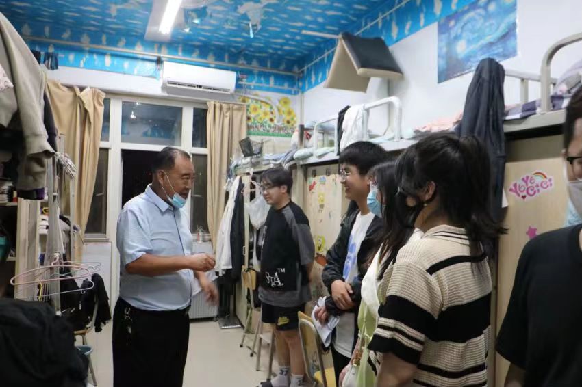 5月23日晚,我院党委书记徐金安,党委副书记李洪玲和全体辅导员老师深入学生宿舍,对夏季寝室安全用电,阳台不堆放易燃物,环境卫生等情况进行检查,并宣传防火安全知识。