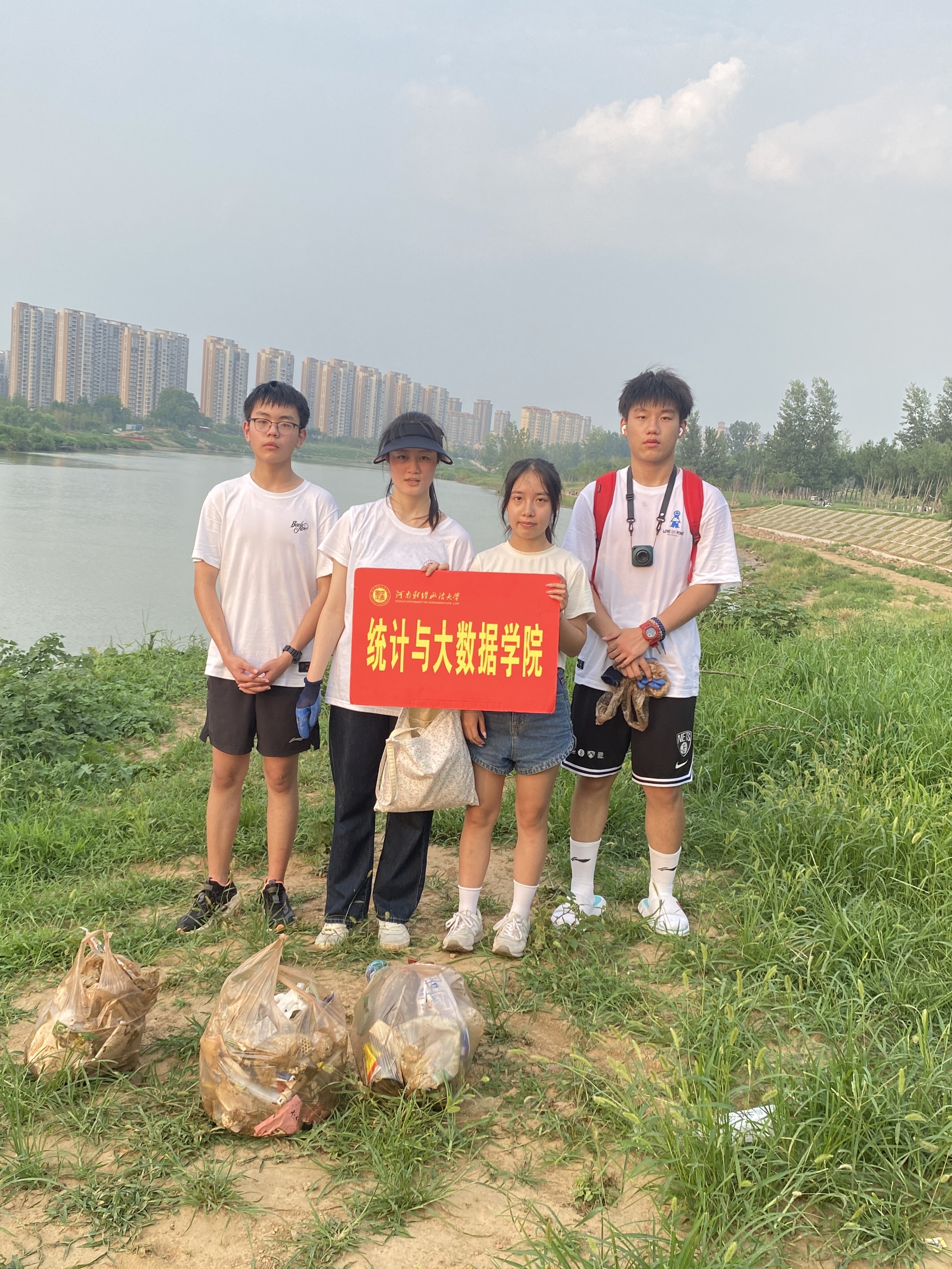 全员努力,守护沙颍河畔。7月24日,实践团队前往周口市沙颍河进行调研实践活动。队员们准备好垃圾袋、橡胶手套等净滩工具全副武装前往周口市沙颍河进行“净滩行动”。小组成员们克服炎热,分工合作,分头拾捡垃圾,并进行分类。有过一次净滩经验的小组成员认真细致,配合默契,用行动倡导环保理念,增强环保意识 。在处理完河滩垃圾后实践队员与沙颍河的管理人员进行交流,了解到沙颍河的日常管理措施和方案。得知管理人员在市民扔垃圾方面并未有管束措施后,我院实践团队与管理人员共同商议提出一些措施,希望能用于沙颍河日后的治理。