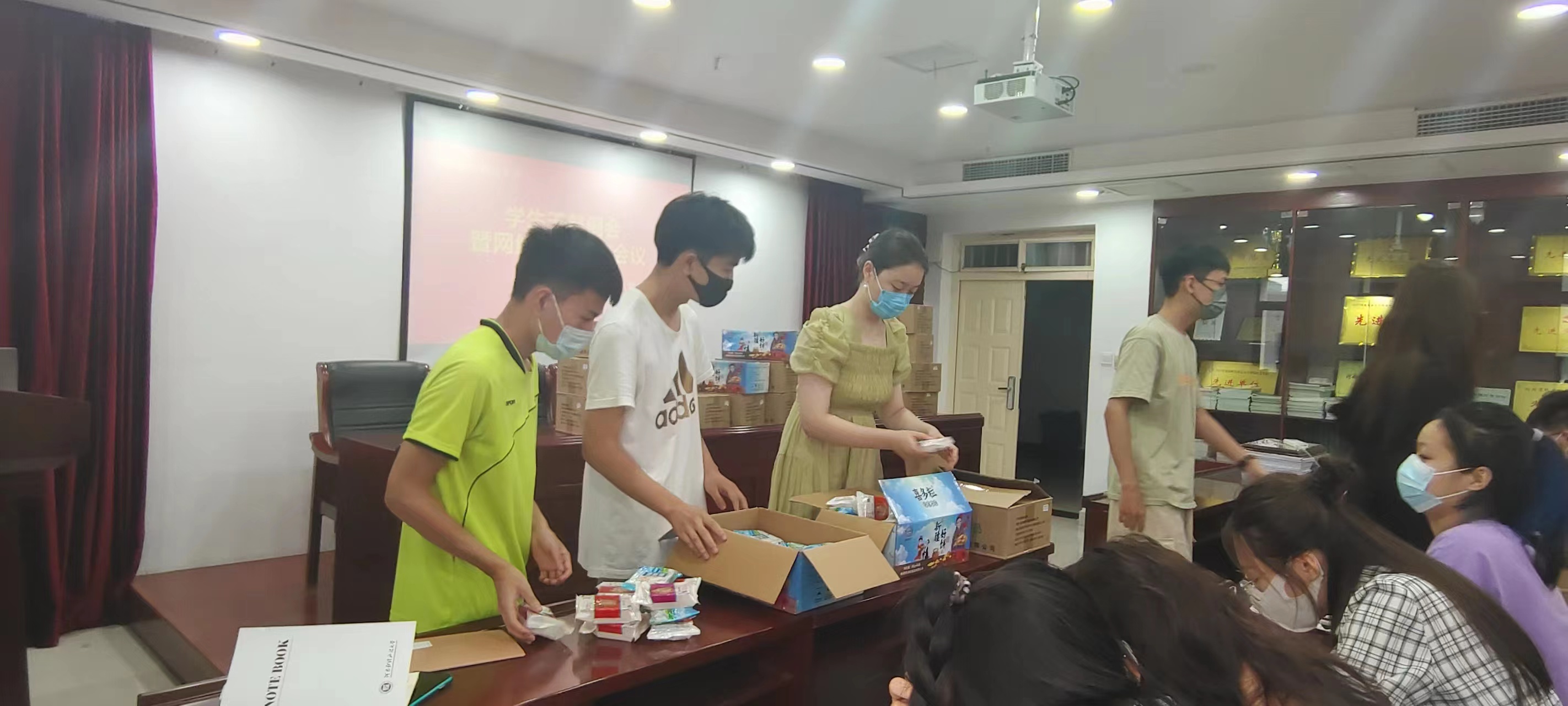学院在教学科研楼A座826会议室召开学生座谈会,了解学生思想动态,发放月饼等物资,向学生传达学院的关心和慰问。以班级为单位,深入宿舍发放月饼,送去祝福。当同学们收到学院发的月饼时,开心之情溢于言表,对学院的归属感冲淡了思乡之情。
