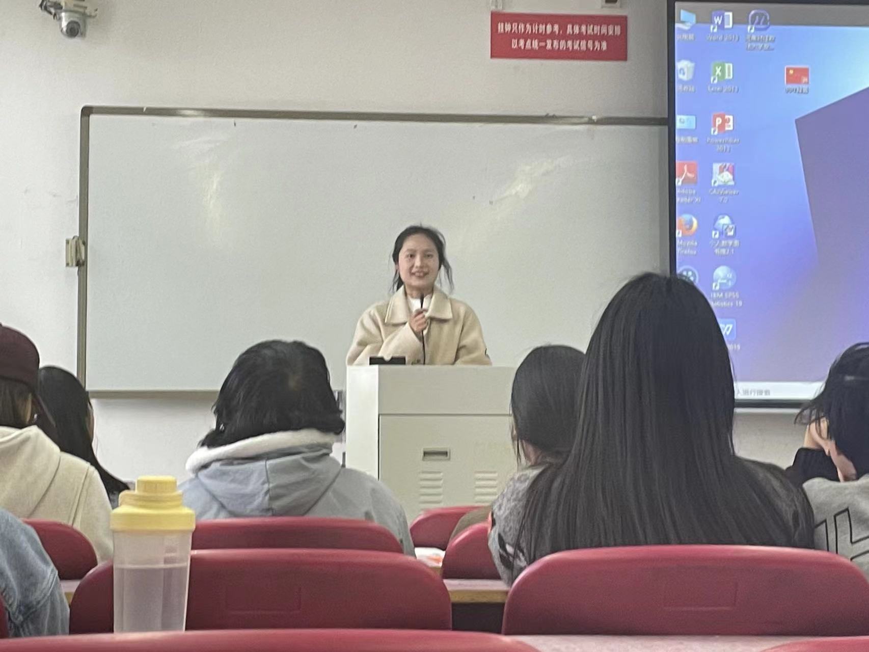 王昕老师叮嘱同学们要保持个人,宿舍卫生,在疫情阴霾散开之际仍要注意防护,提升对新冠感染“乙类乙管”的认知。她强调个人外出要注意安全,特别是夜晚要结伴而行并在规定时间内及时返校,杜绝夜不归宿的行为发生。同时,她提出要树立正确的宗教观,坚持教育与宗教相分离,严格做到“两个不得”“五个严禁”。她强调,广大青年学生要提高政治站位,加强自身建设,努力成为社会主义核心价值观的坚定信仰者、积极传播者、模范践行者。