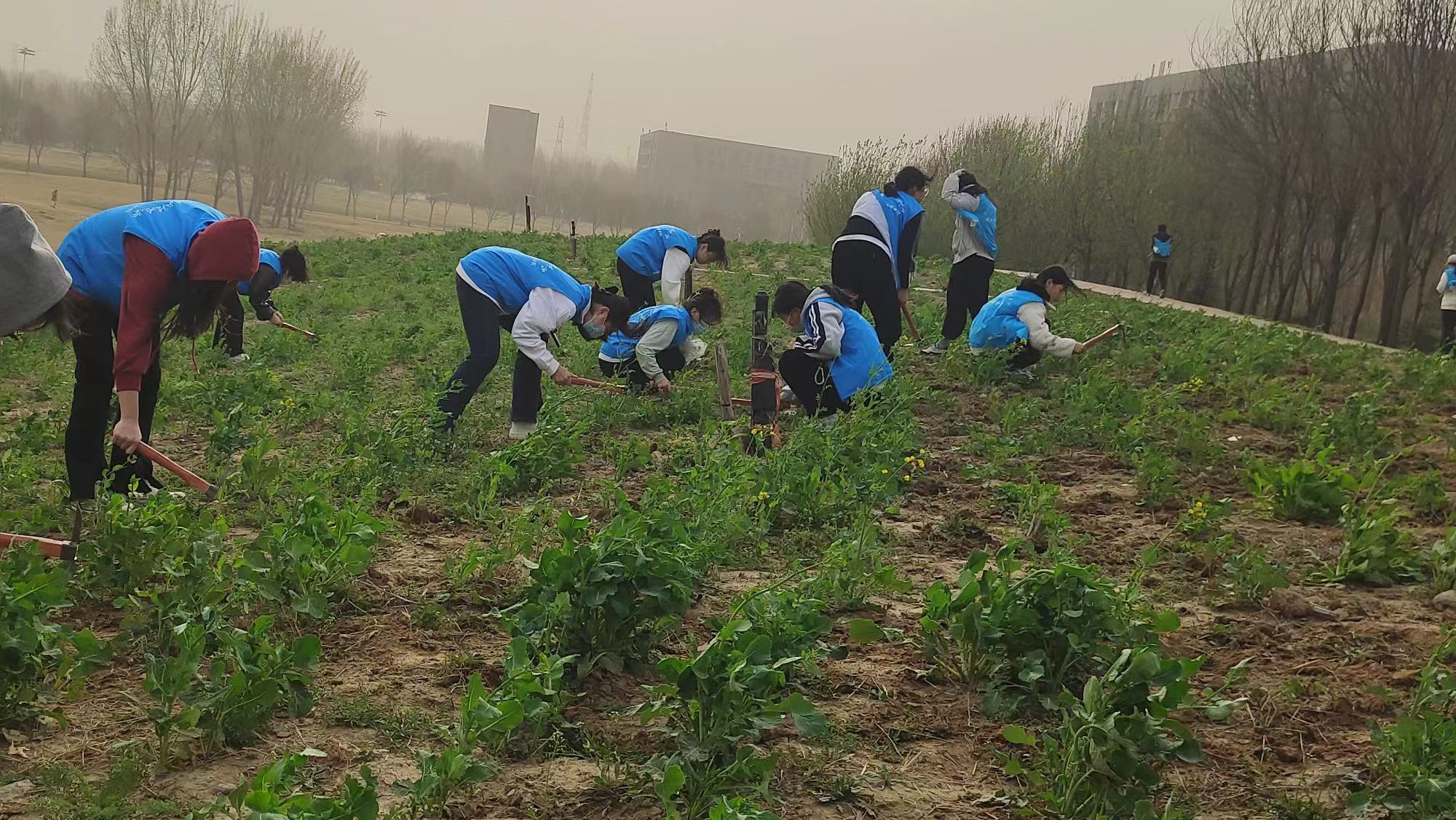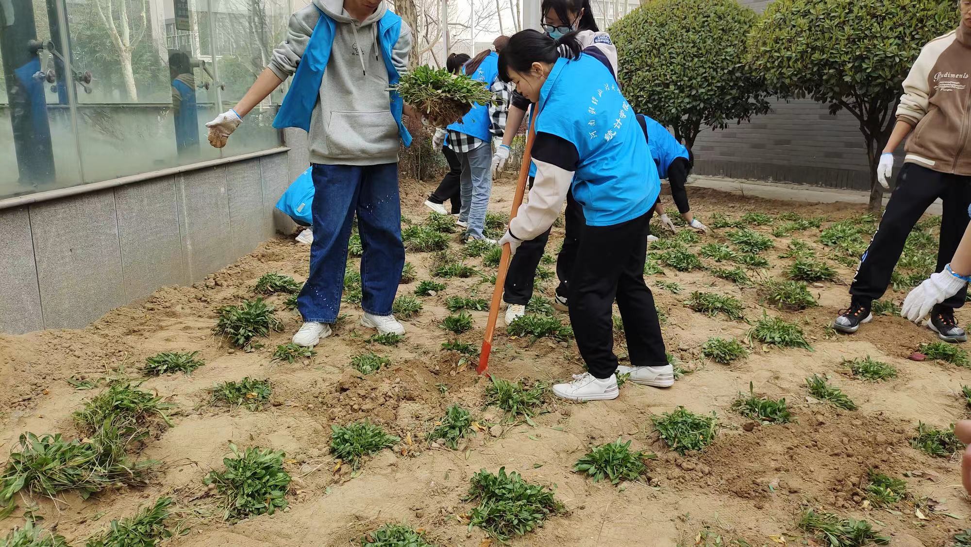 此次活动中,志愿者们首先进行了拣落叶、清理花坛等多样的养护绿化活动,而后又在植树地点一同种植了新苗,充分彰显了我院志愿者团结协作,身体力行的责任感与担当感。