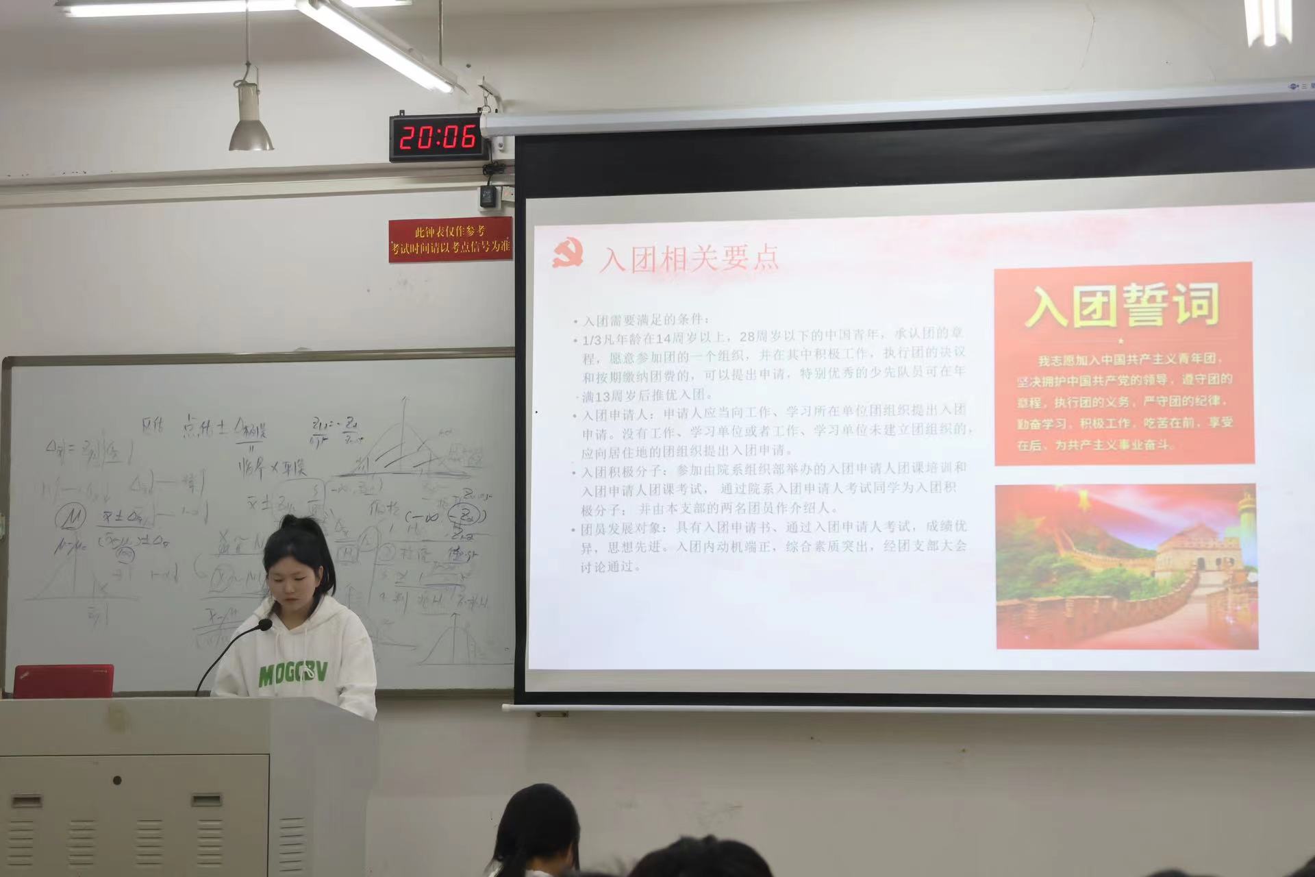 此次主题教育活动围绕中国梦和中国共产党第二十次全国代表大会的宏伟蓝图展开。活动伊始,我院组织部成员向同学们详细讲解了建党的艰难过程,同时从马克思主义、中国特色社会主义、建党精神等多角度阐释了党的二十大报告,指出当代大学生应勇于奋斗、敢于担当,积极学习中国特色社会主义思想。最后,组织部负责人向同学们介绍了入团入党申请流程,为后续2023级学生入团入党工作的有序开展打下了良好的基础。