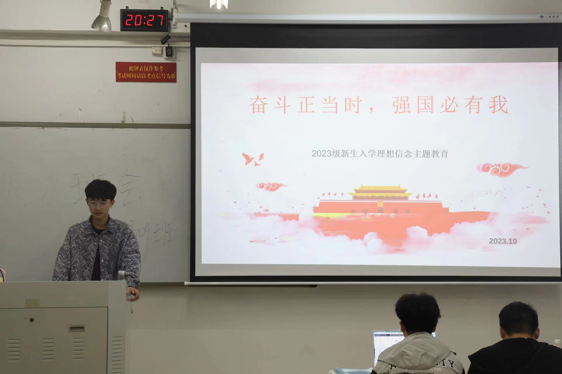 10月19日晚,我院组织部于第一教学楼301至307教室开展2023级新生入学理想信念主题教育活动。