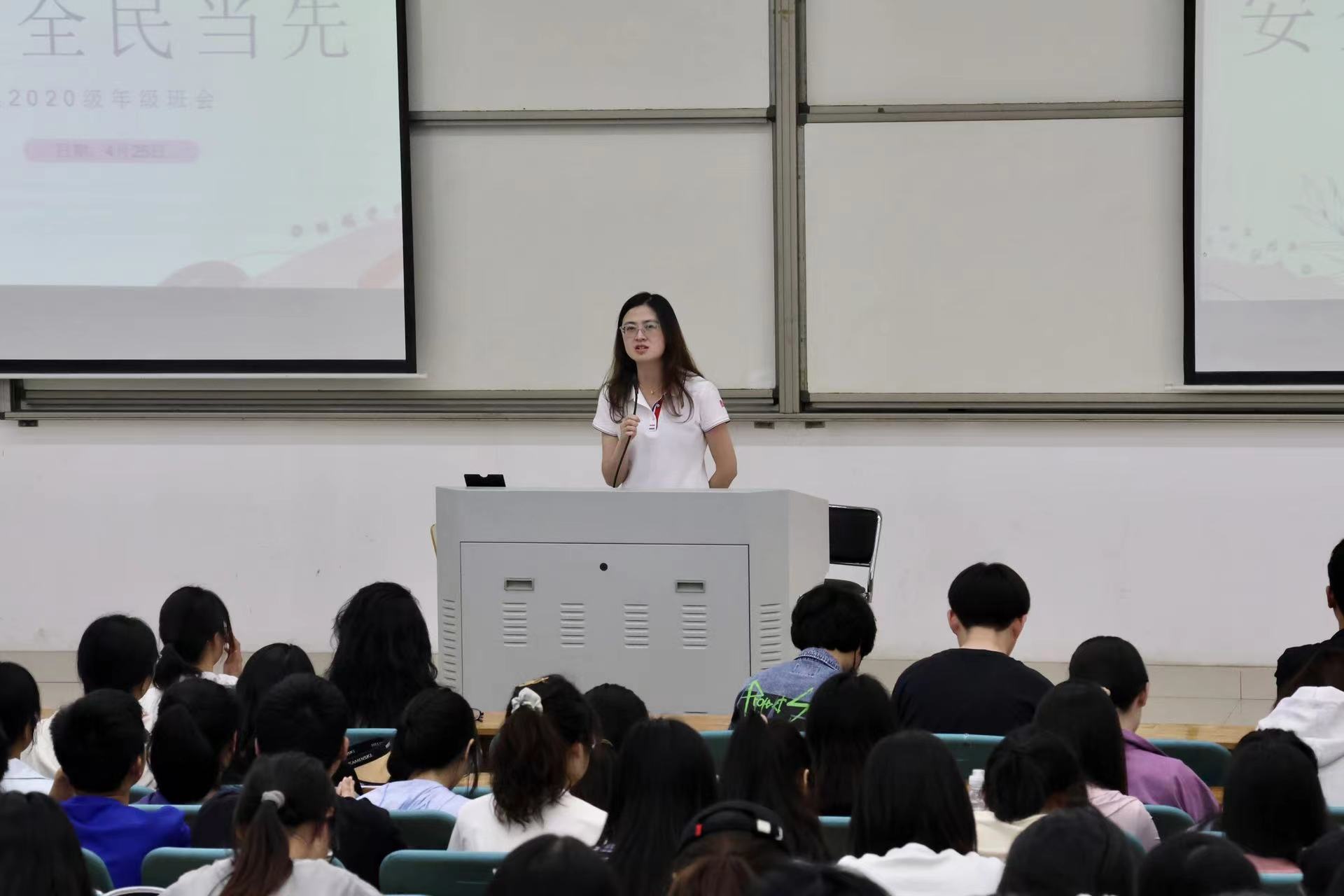 王灿首先对新一轮本科教育教学审核评估的内涵要义和评估过程两个方面对审核评估工作进行了全面解读。然后,王灿围绕安全稳定方面进行了具体要求。她强调,春季是安全事故频发的时期,且恰逢五一假期,希望同学们提高自身安全意识和防范能力,合理分配时间、适度调节压力,度过一个充实愉快的假期。同时,她要求学生们要做好离校返校的准备并进行报备。最后王灿结合学生面临的就业、论文答辩等问题给予了建议,并表示有任何问题都可以随时向老师求助。
