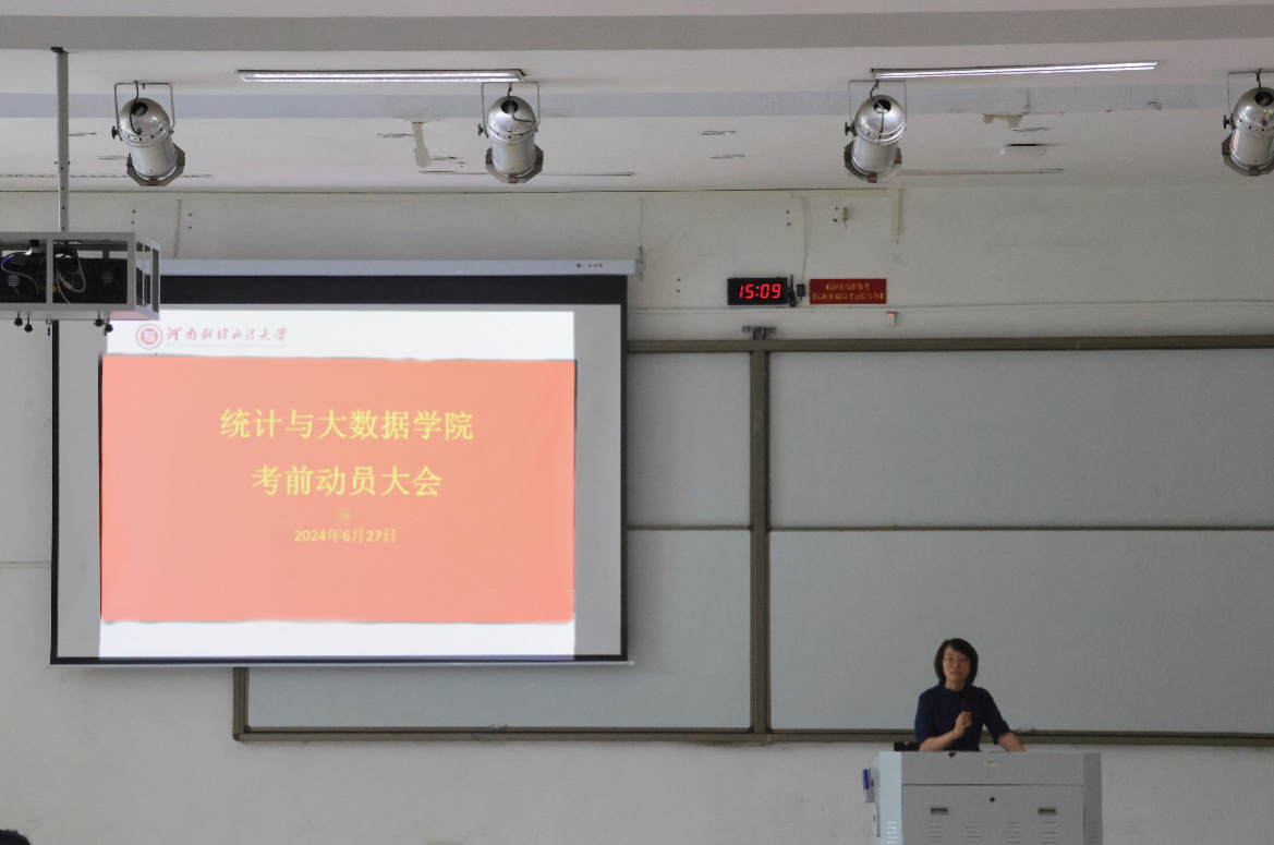 6月27日下午,统计与大数据学院在教二219教室召开了考前动员大会,学院领导班子全体成员、教学办公室及团委全体老师和在校生参加此次会议。