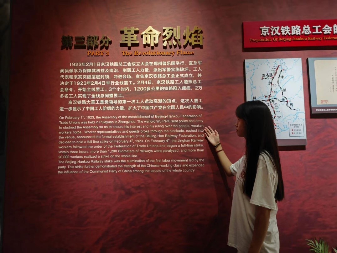 清晨的阳光洒在纪念堂的门楣上,为这座承载着厚重历史的建筑增添了一抹神圣的光辉。实践团的成员们迈着整齐而庄重的步伐,沿着精心规划的参观路线徐徐前行。刚进入展厅,一幅巨大的浮雕便映入眼帘,生动地再现了二七大罢工时期工人们英勇无畏的身姿,瞬间将实践团的成员们拉回到那段波澜壮阔的历史场景之中。