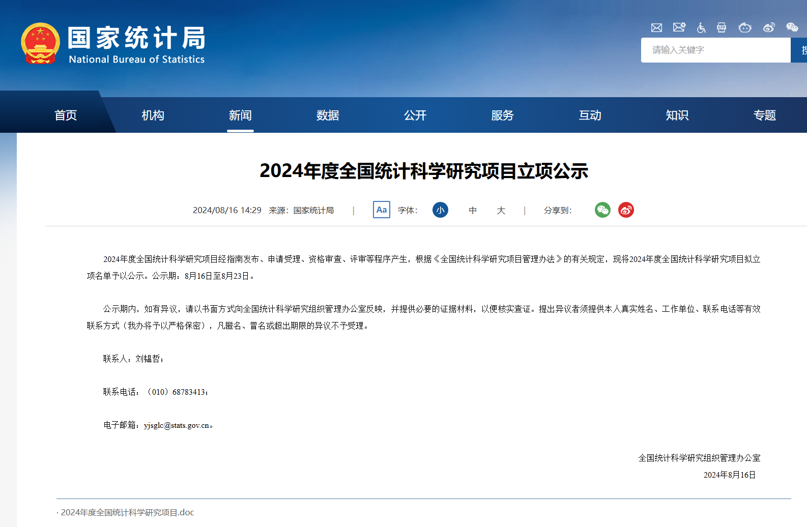 全国统计科学研究项目面向全国申报,选题紧密围绕当前统计改革发展中的重大理论及实践问题,充分发挥全国统计科学研究项目的示范引导作用,为统计改革发展助力,为繁荣统计科学服务。