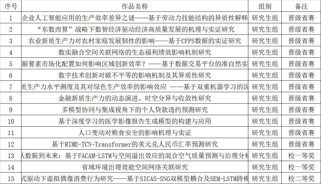 2025年(第十一届)全国大学生统计建模大赛自2月开赛以来,共29支队伍提交论文参赛。经过匿名评审,共17支队伍入围省赛,其中本科生组5支,研究生组12支。