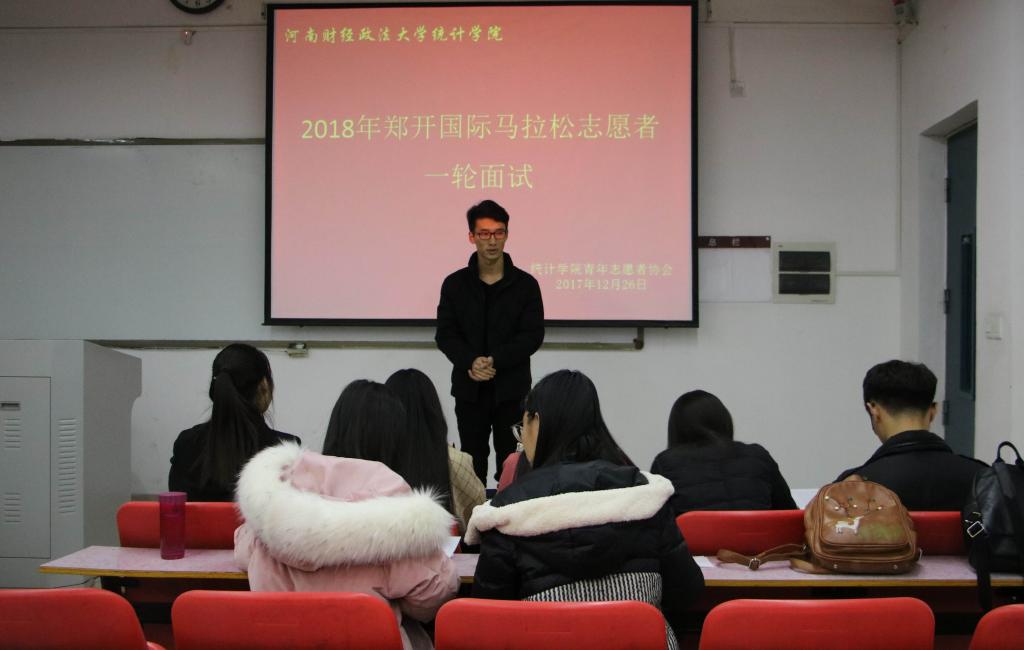 为响应校青年志愿者协会关于2018年郑开马拉松志愿者的招募通知,我院于12月26日晚18:00在教二202、203、204室进行了志愿者一轮面试活动。此次活动由我院主要学生干部担任评审。我院共计80名学生报名参加。